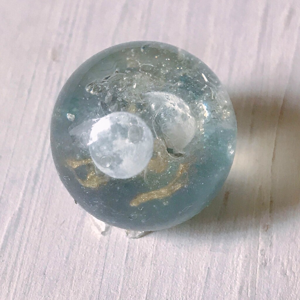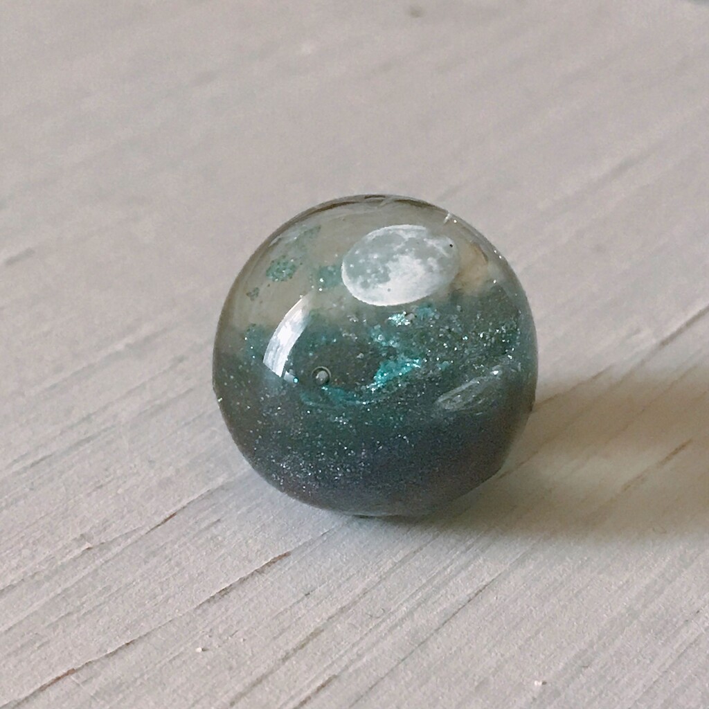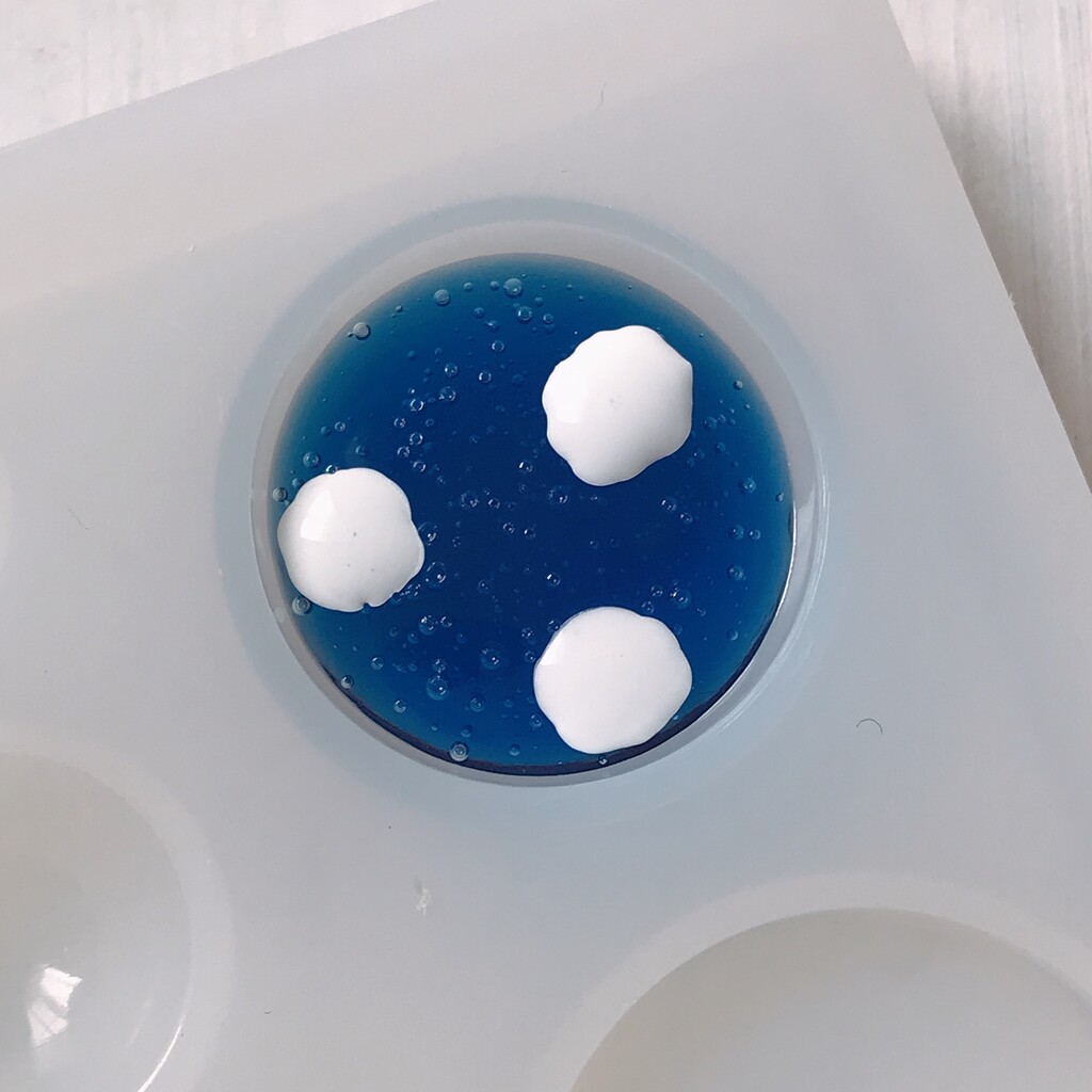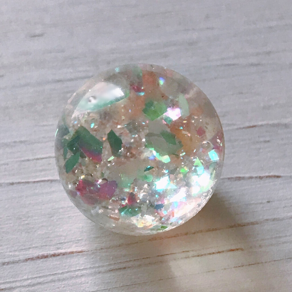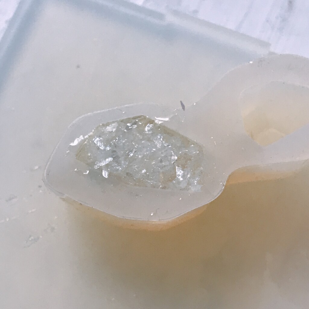 今日の鉱石は、先日やったクラゲ模様を応用して作っていこうと思います。 ↑このクラゲ。まず、モールドにレジンを入れます。半分くらい。硬化します。固めてる間に、絵の具の準備。アクリル絵の具を水で薄めました。これを硬化したレジンの上から落としていきます。ポタポタ ...