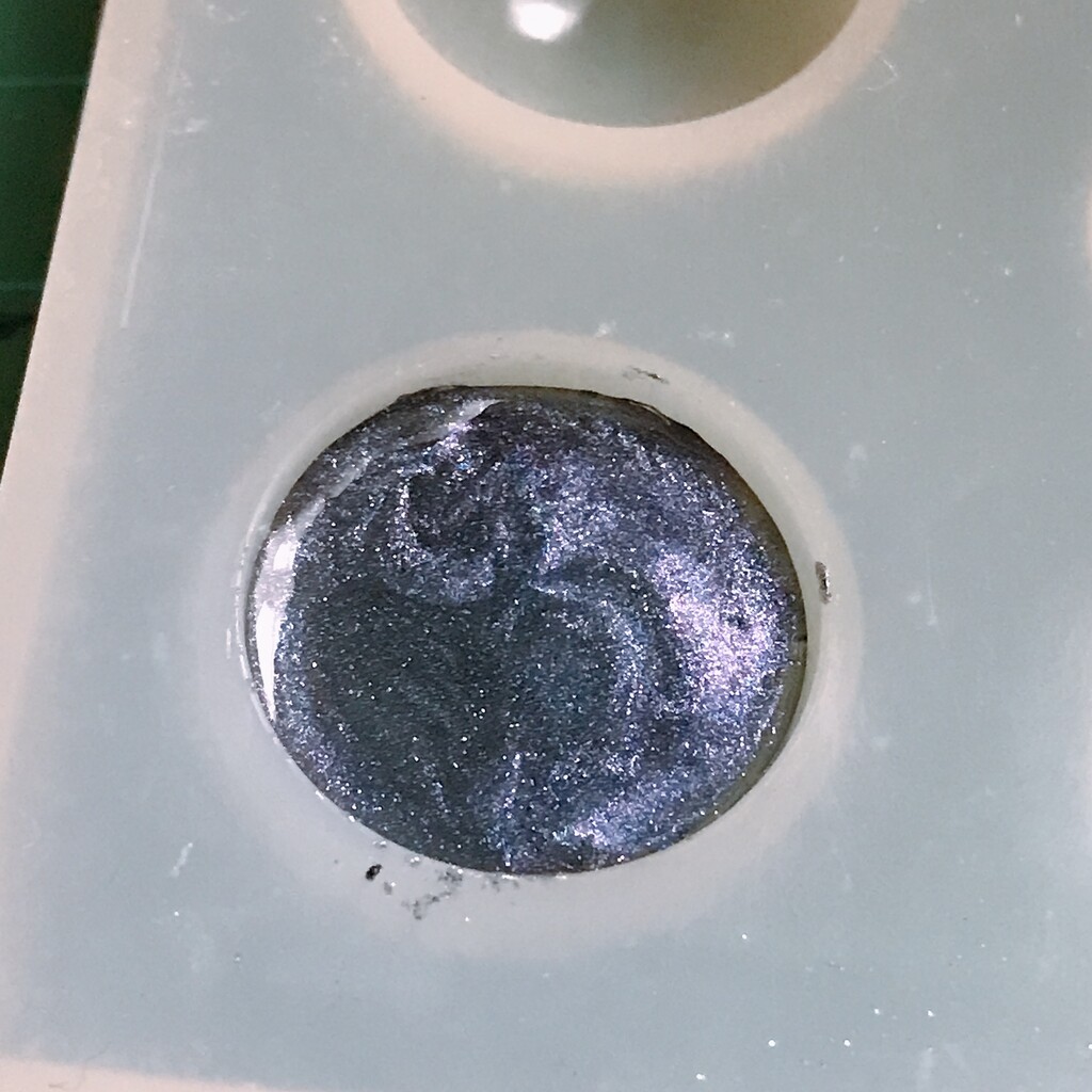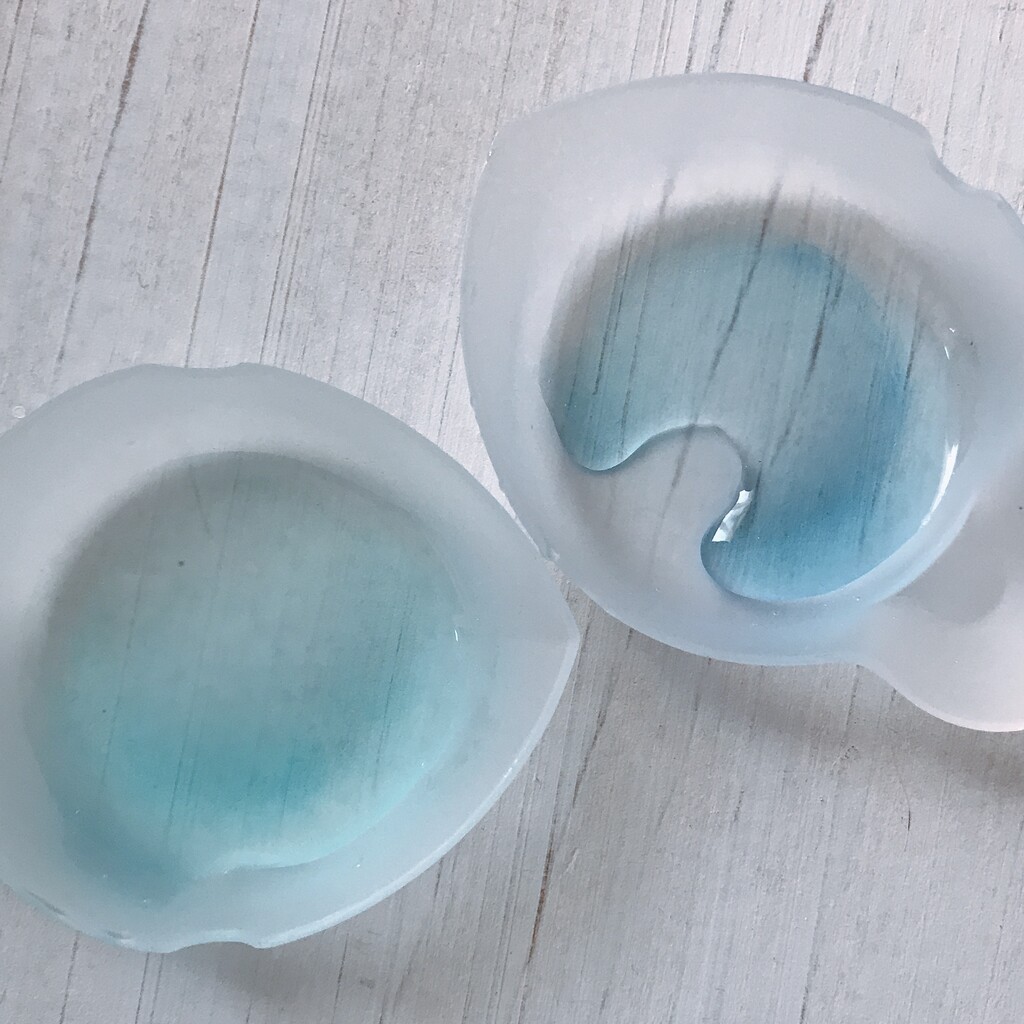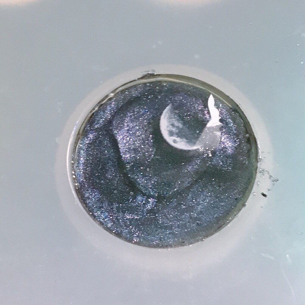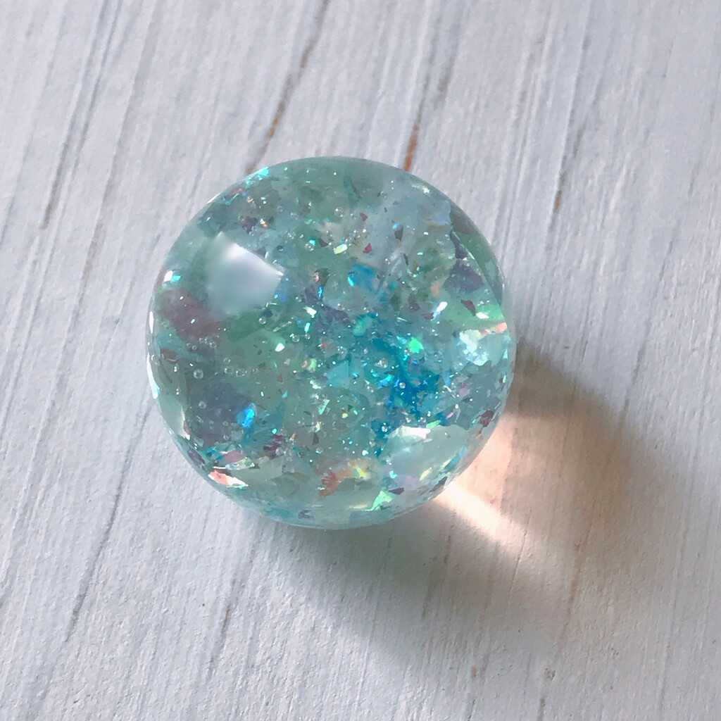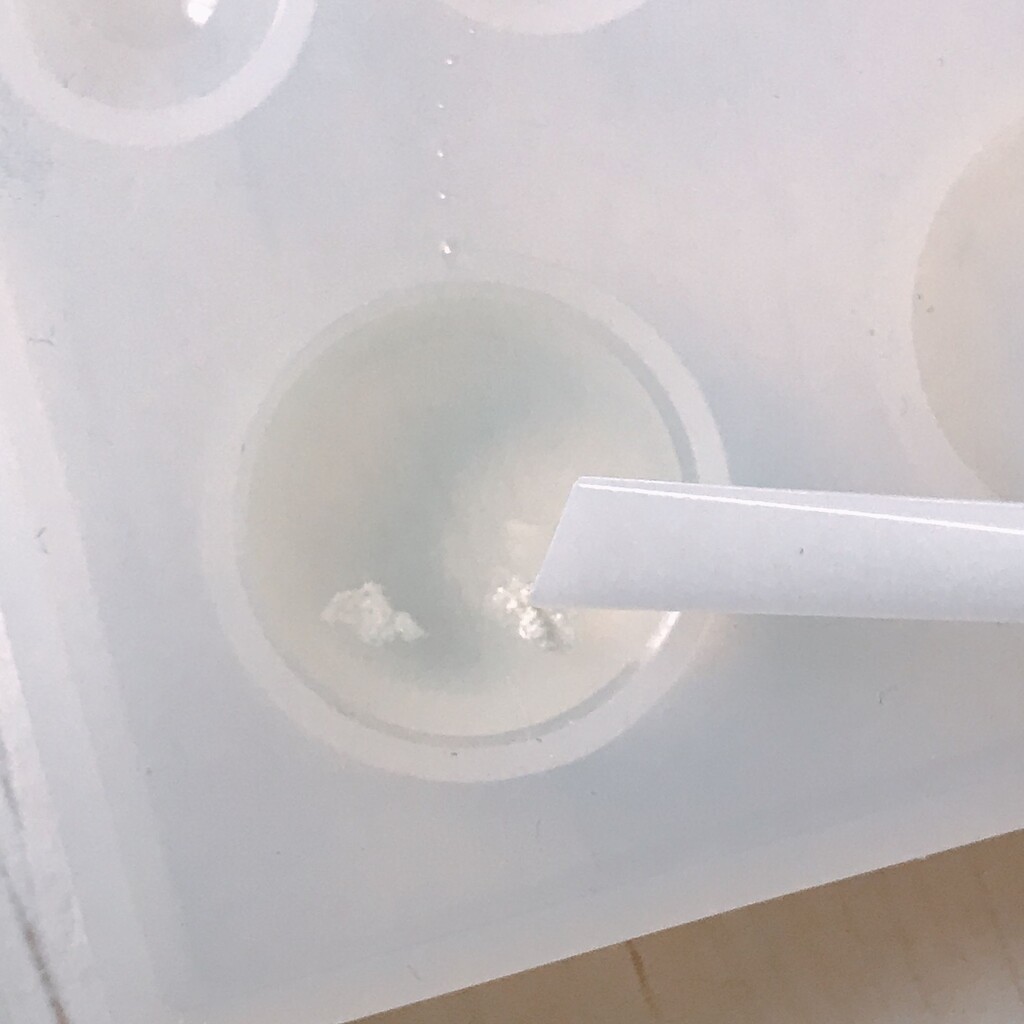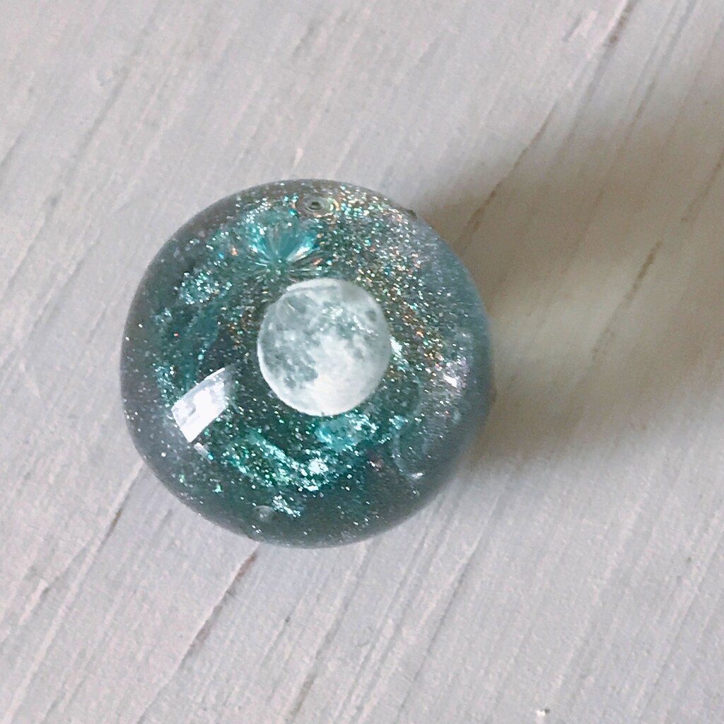 今日の鉱石は、先日やったクラゲ模様を応用して作っていこうと思います。 ↑このクラゲ。まず、モールドにレジンを入れます。半分くらい。硬化します。固めてる間に、絵の具の準備。アクリル絵の具を水で薄めました。これを硬化したレジンの上から落としていきます。ポタポタ ...