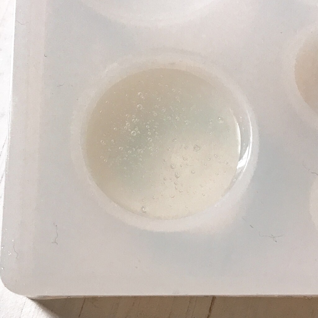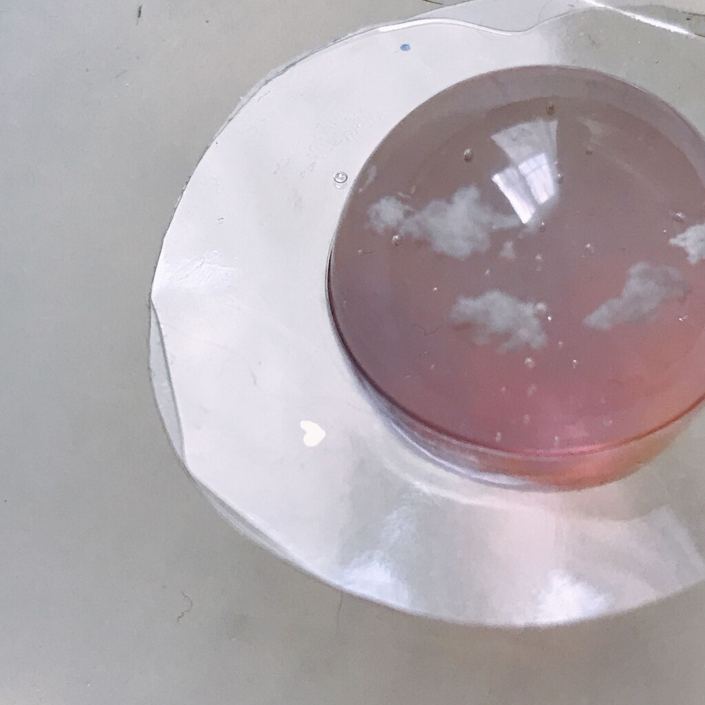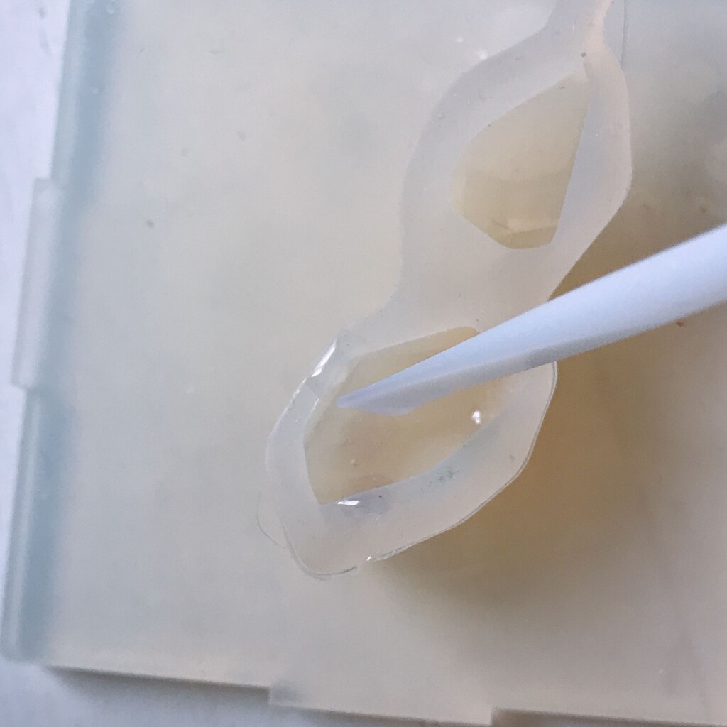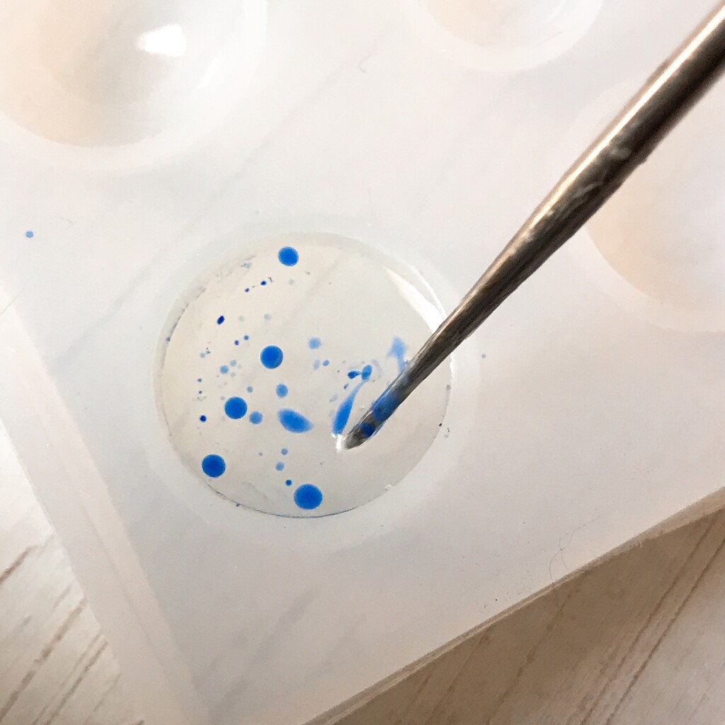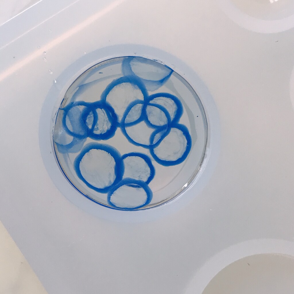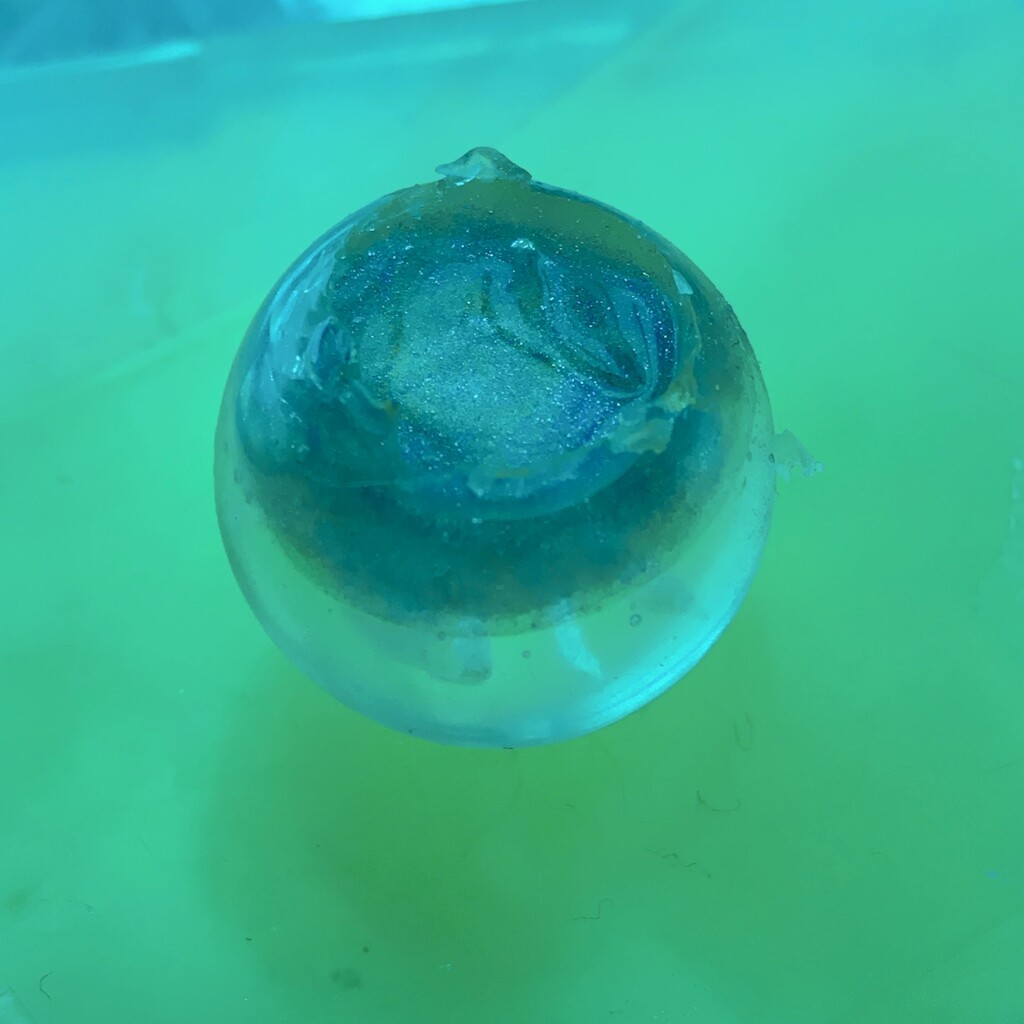 今日の鉱石は、先日やったクラゲ模様を応用して作っていこうと思います。 ↑このクラゲ。まず、モールドにレジンを入れます。半分くらい。硬化します。固めてる間に、絵の具の準備。アクリル絵の具を水で薄めました。これを硬化したレジンの上から落としていきます。ポタポタ ...