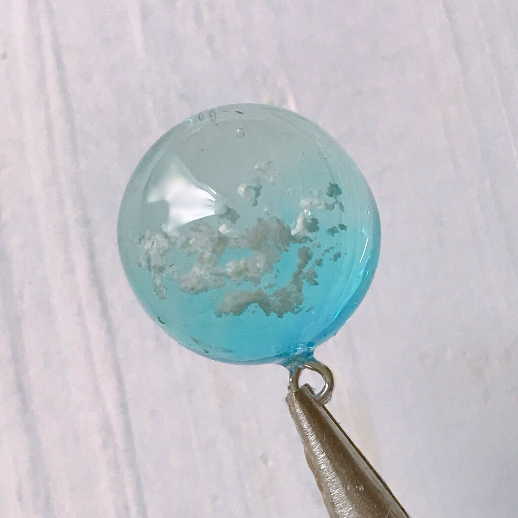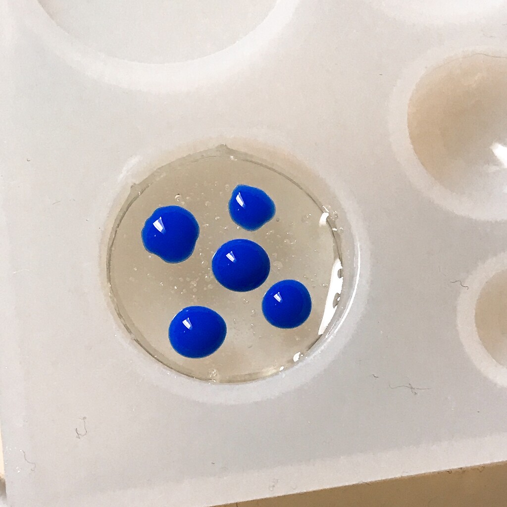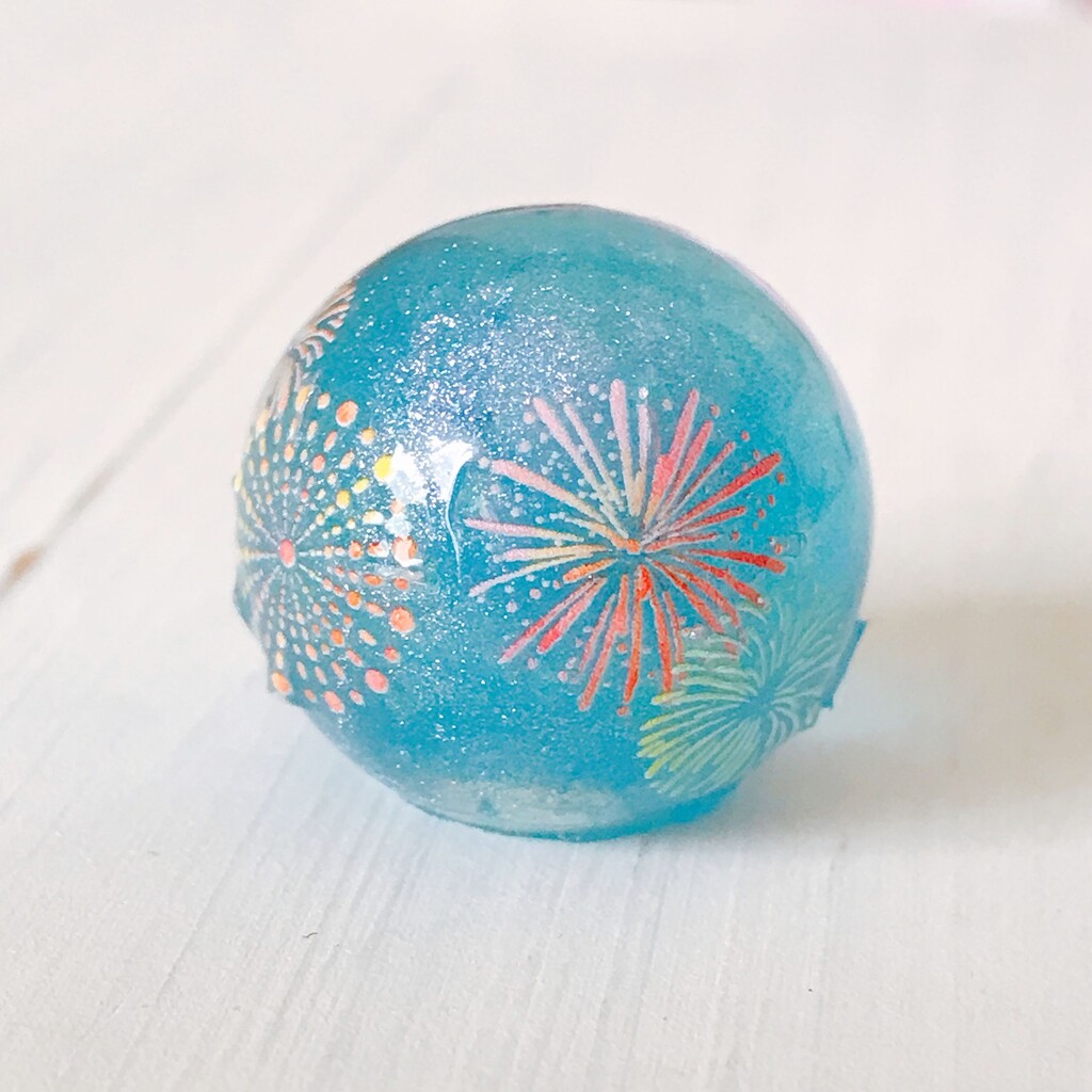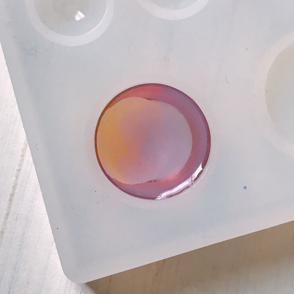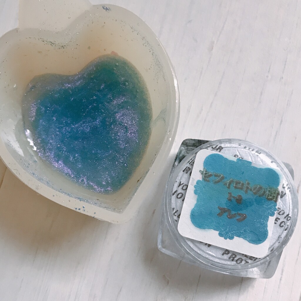 今日の鉱石は、先日やったクラゲ模様を応用して作っていこうと思います。 ↑このクラゲ。まず、モールドにレジンを入れます。半分くらい。硬化します。固めてる間に、絵の具の準備。アクリル絵の具を水で薄めました。これを硬化したレジンの上から落としていきます。ポタポタ ...