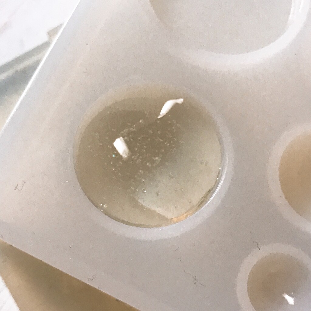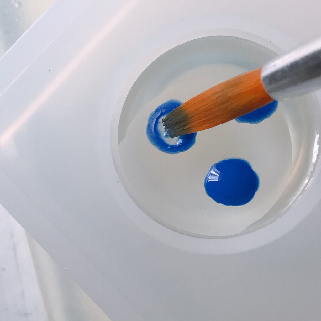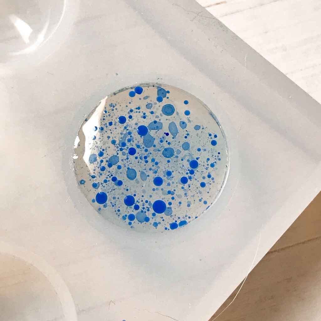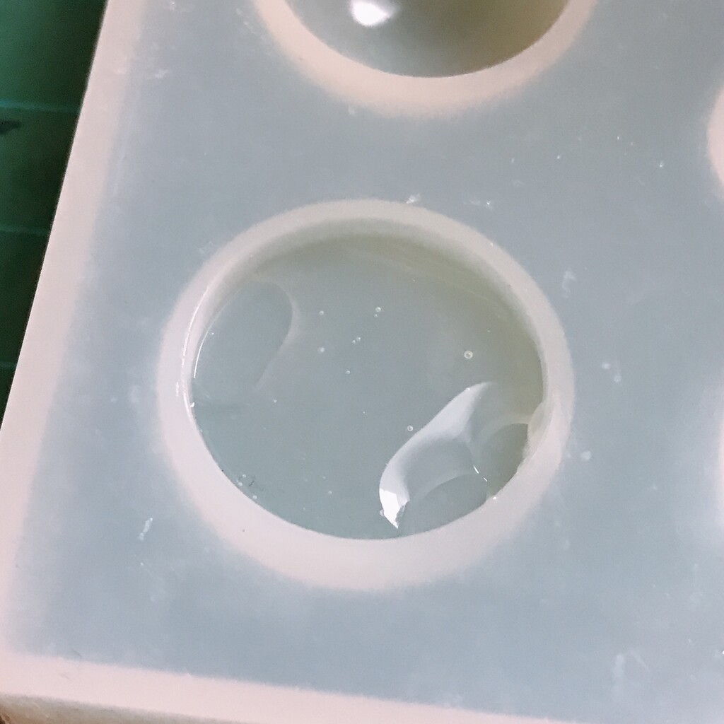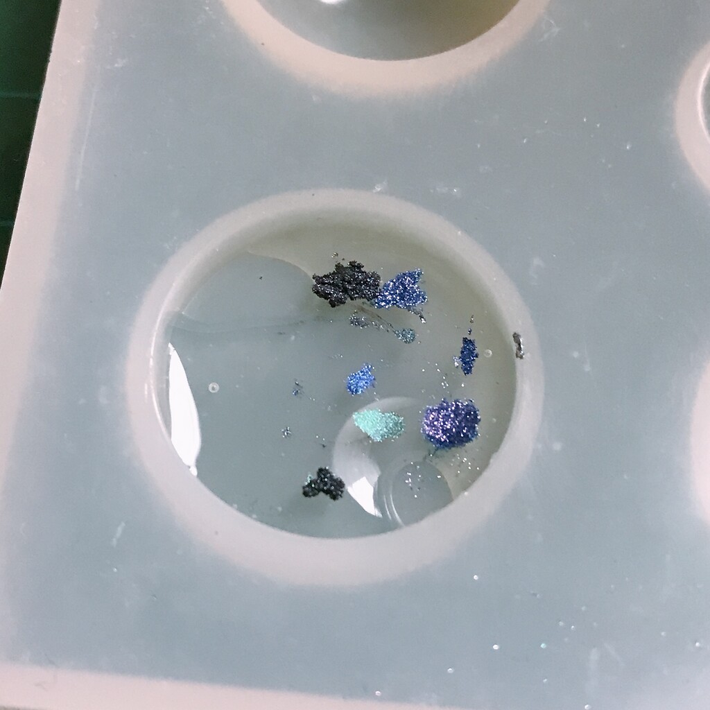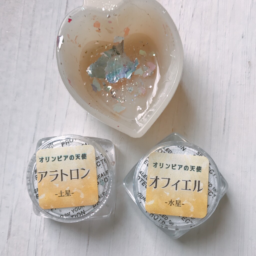 今日の鉱石は、先日やったクラゲ模様を応用して作っていこうと思います。 ↑このクラゲ。まず、モールドにレジンを入れます。半分くらい。硬化します。固めてる間に、絵の具の準備。アクリル絵の具を水で薄めました。これを硬化したレジンの上から落としていきます。ポタポタ ...