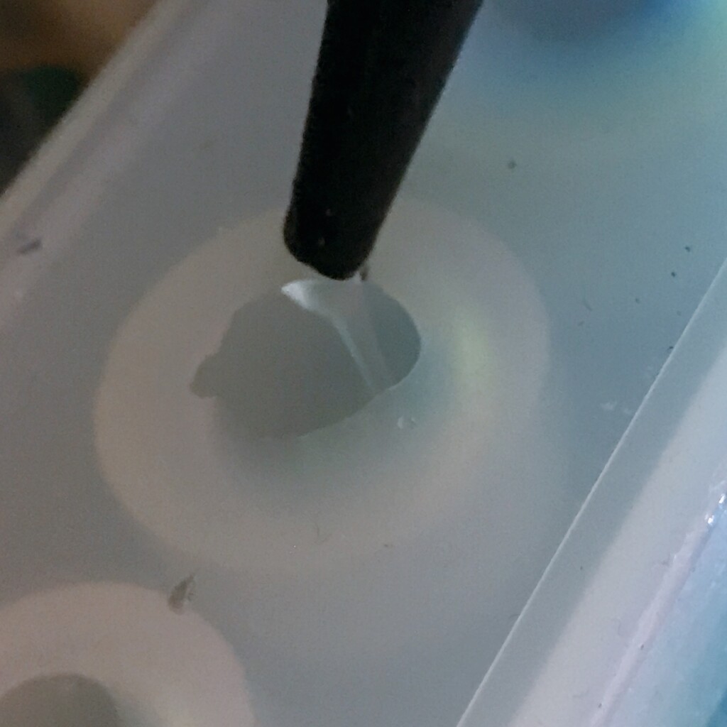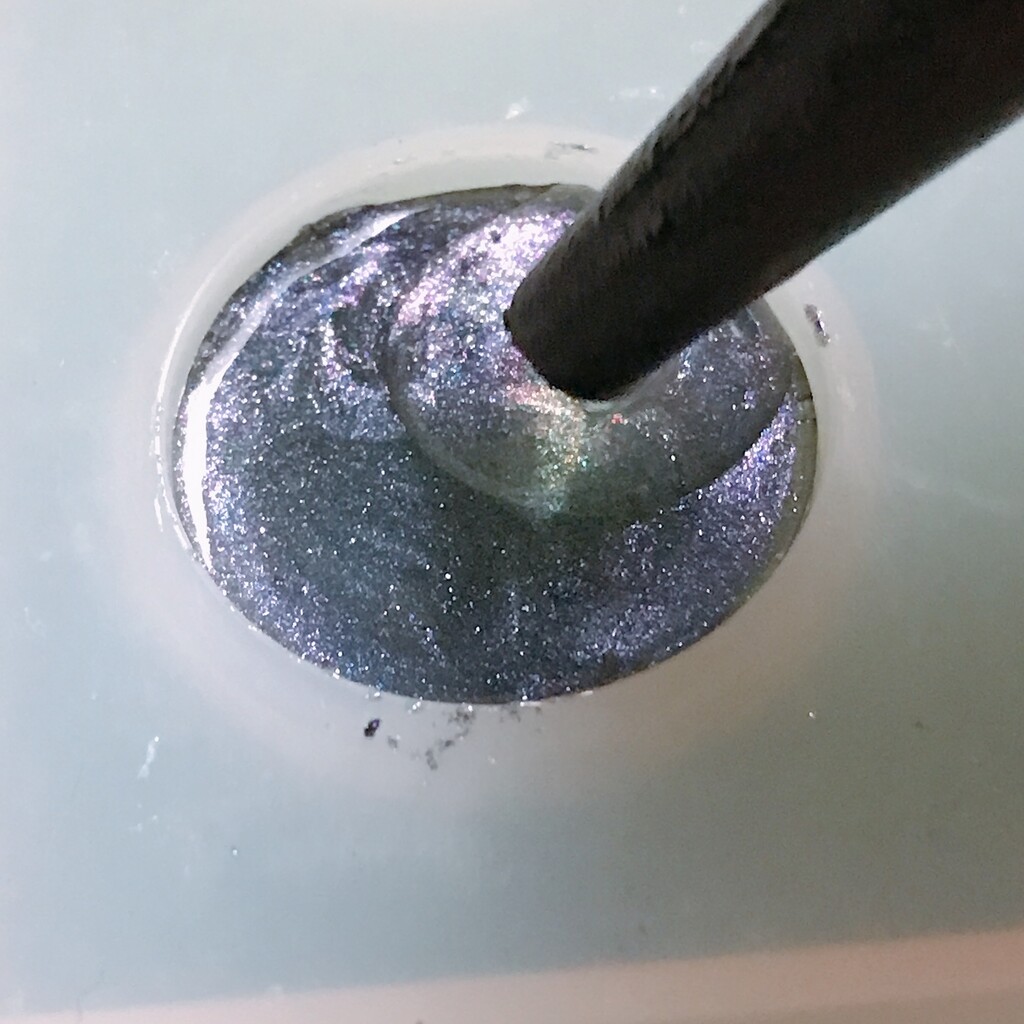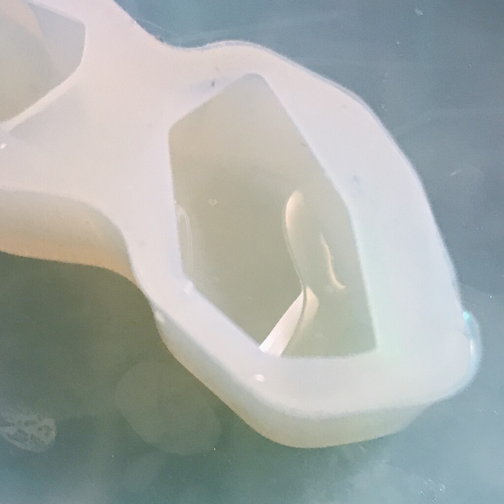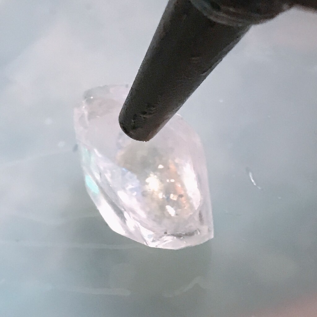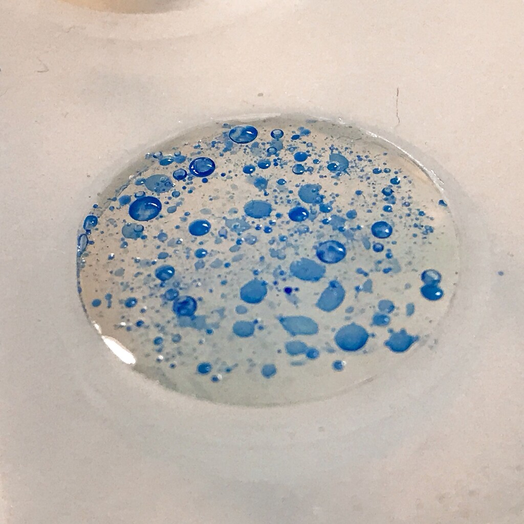 今日の鉱石は、先日やったクラゲ模様を応用して作っていこうと思います。 ↑このクラゲ。まず、モールドにレジンを入れます。半分くらい。硬化します。固めてる間に、絵の具の準備。アクリル絵の具を水で薄めました。これを硬化したレジンの上から落としていきます。ポタポタ ...