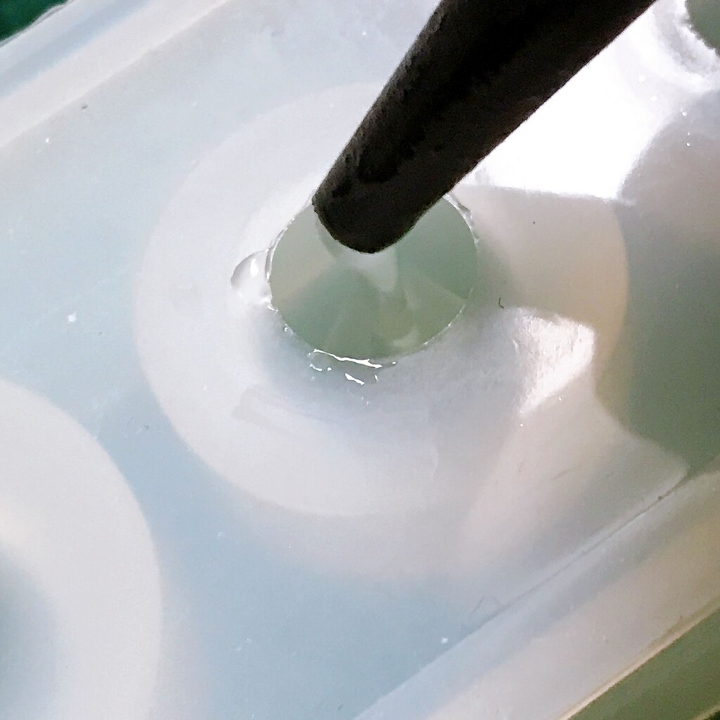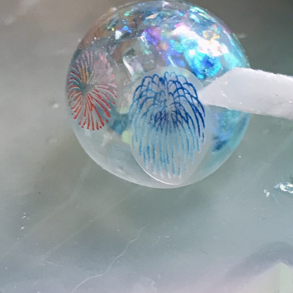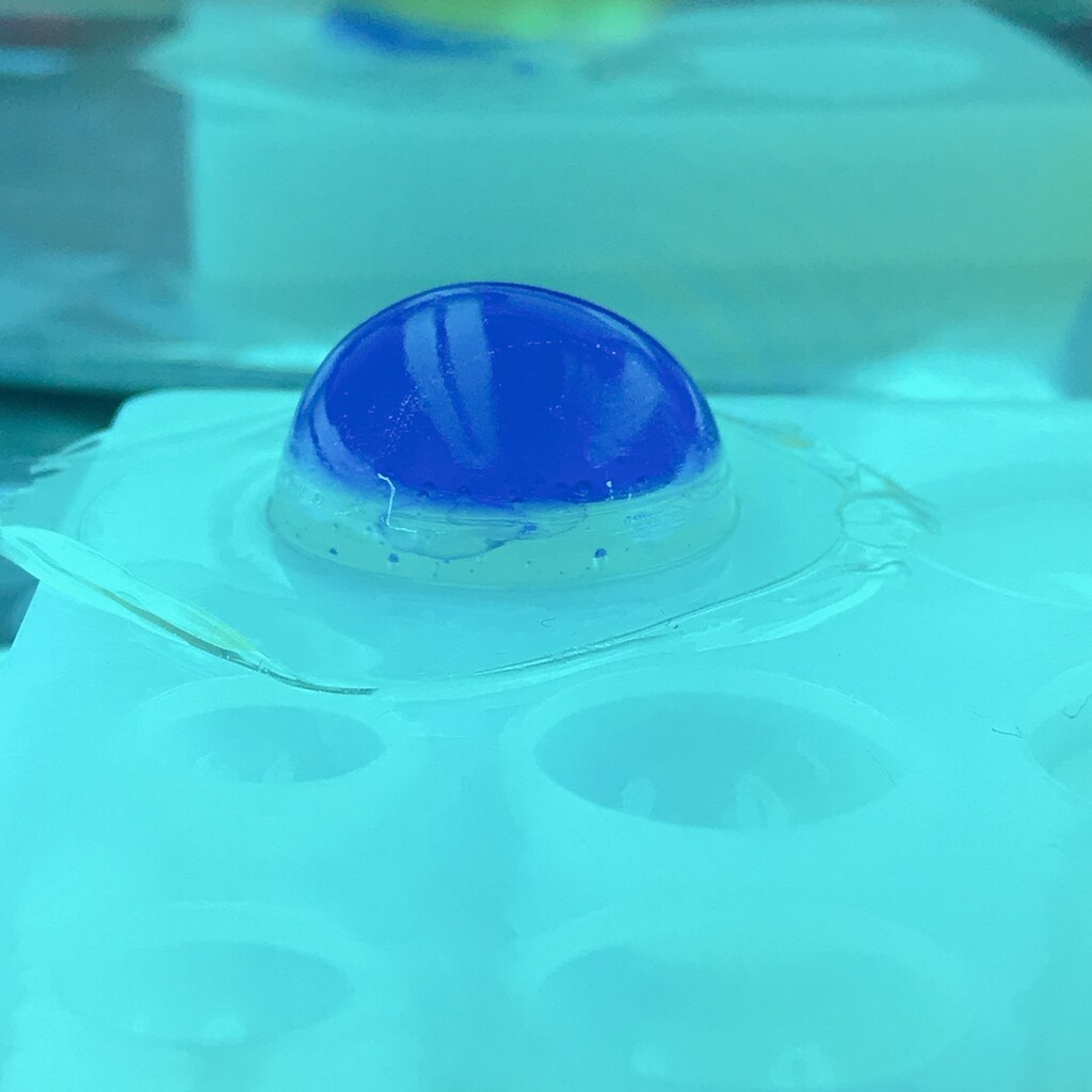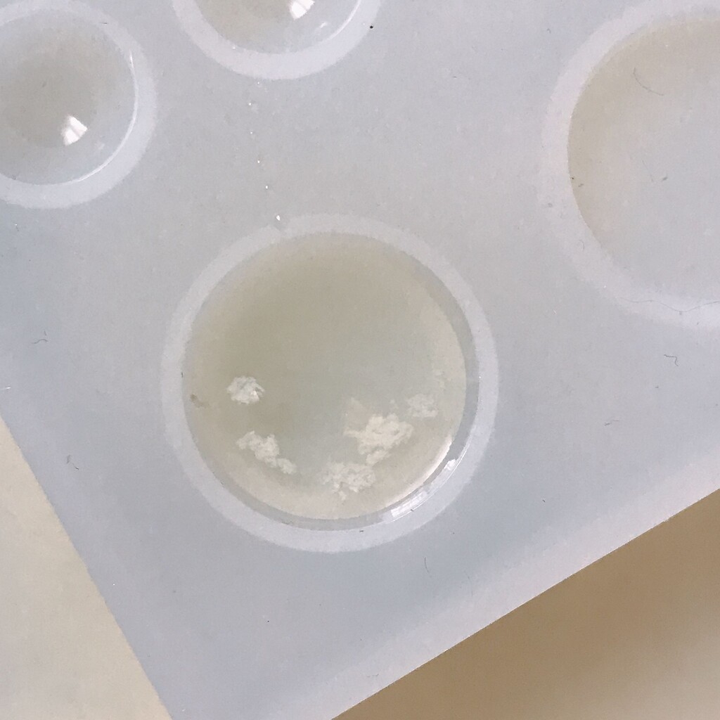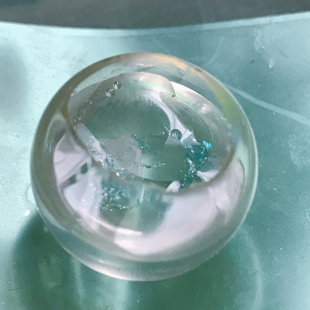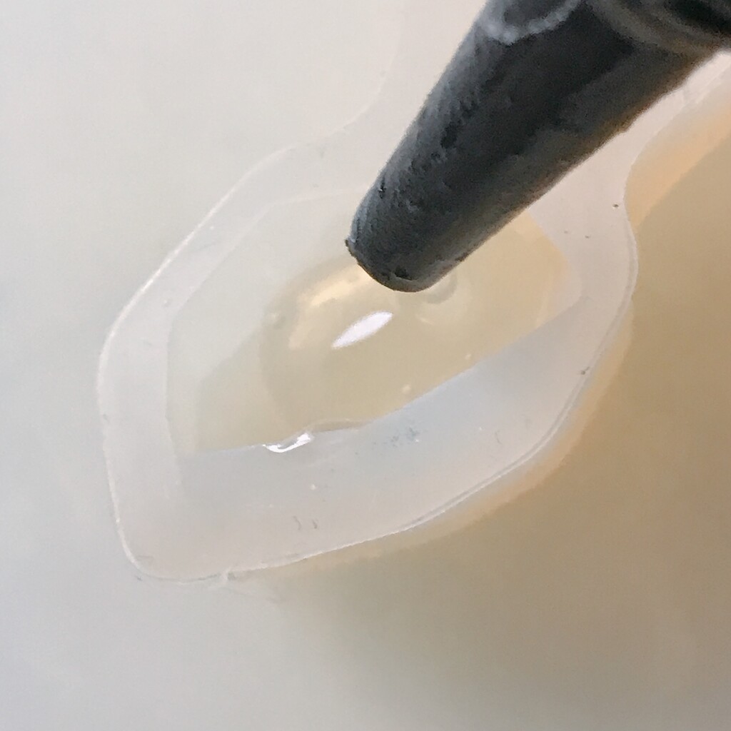 今日の鉱石は、先日やったクラゲ模様を応用して作っていこうと思います。 ↑このクラゲ。まず、モールドにレジンを入れます。半分くらい。硬化します。固めてる間に、絵の具の準備。アクリル絵の具を水で薄めました。これを硬化したレジンの上から落としていきます。ポタポタ ...