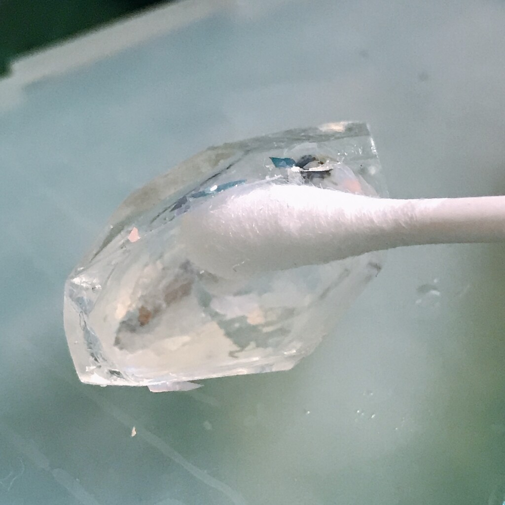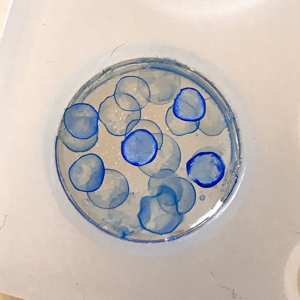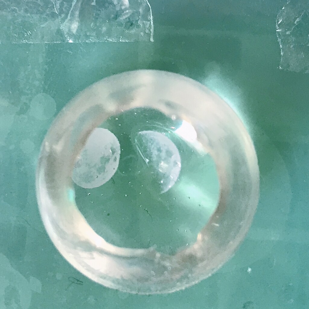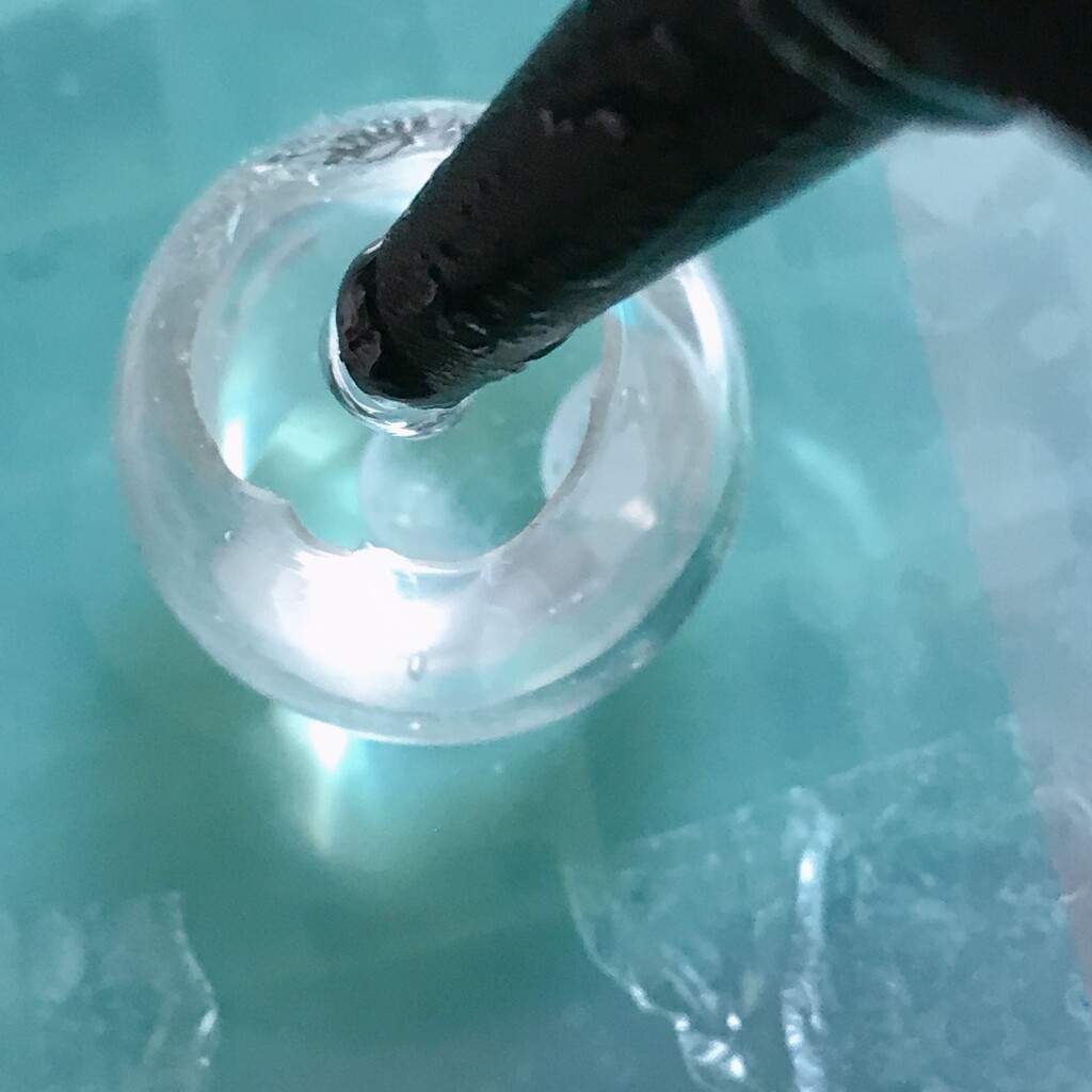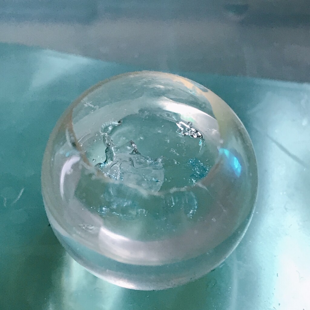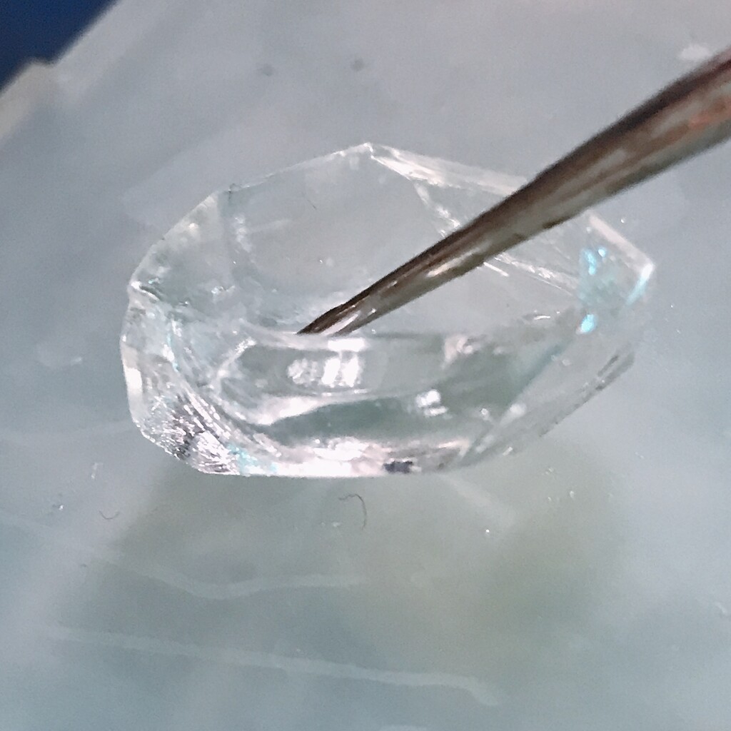 今日の鉱石は、先日やったクラゲ模様を応用して作っていこうと思います。 ↑このクラゲ。まず、モールドにレジンを入れます。半分くらい。硬化します。固めてる間に、絵の具の準備。アクリル絵の具を水で薄めました。これを硬化したレジンの上から落としていきます。ポタポタ ...