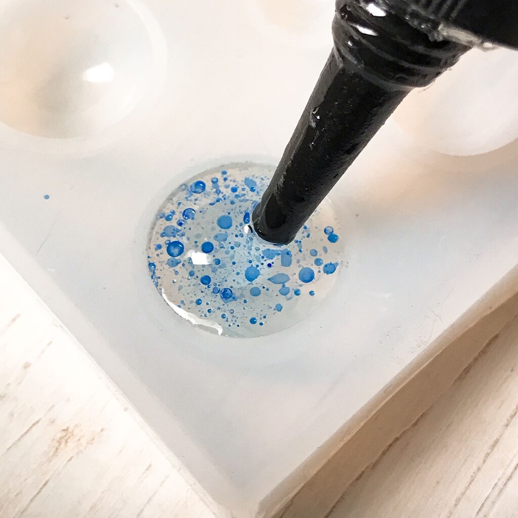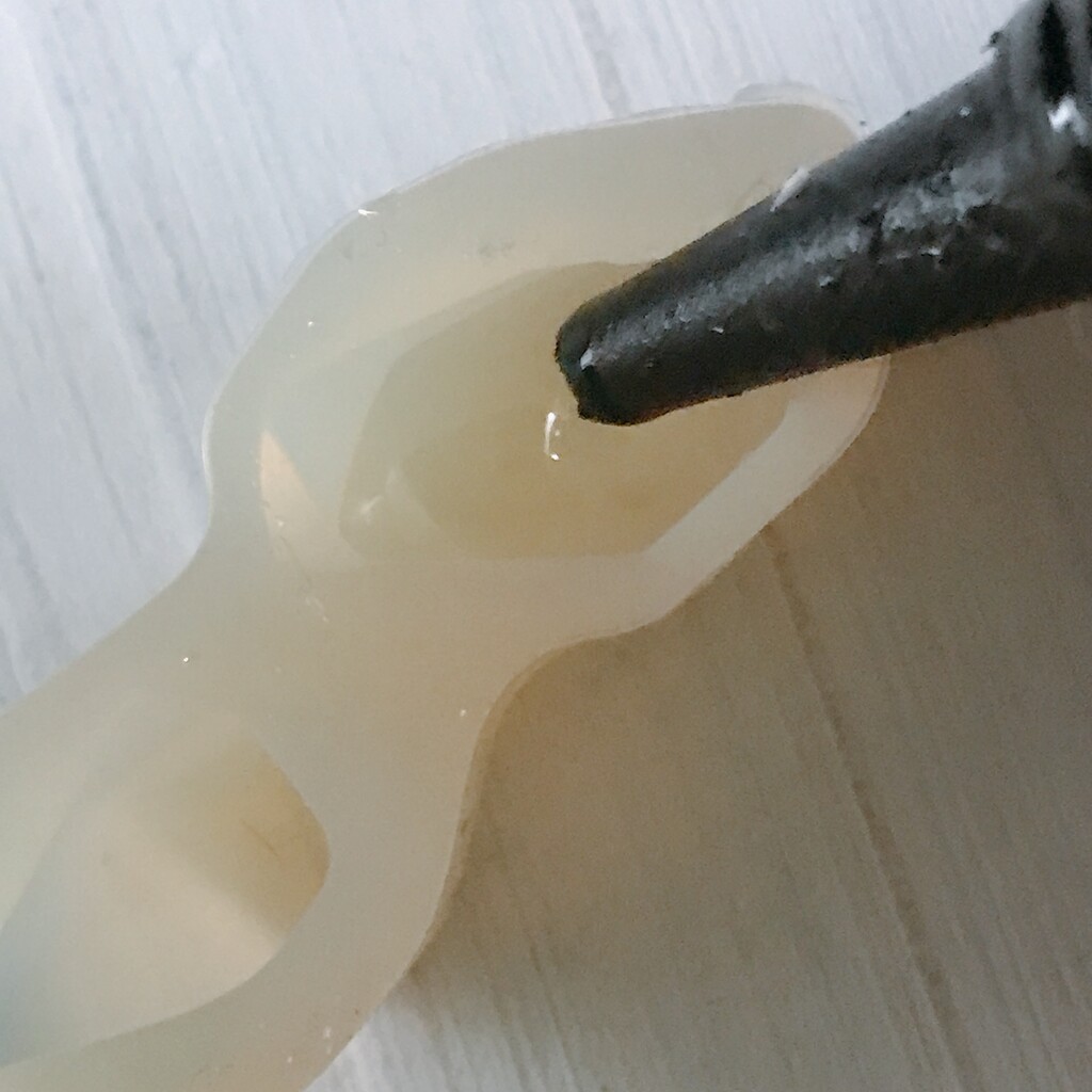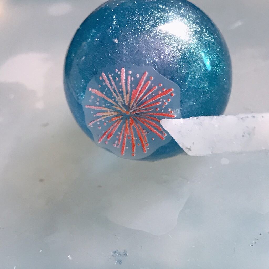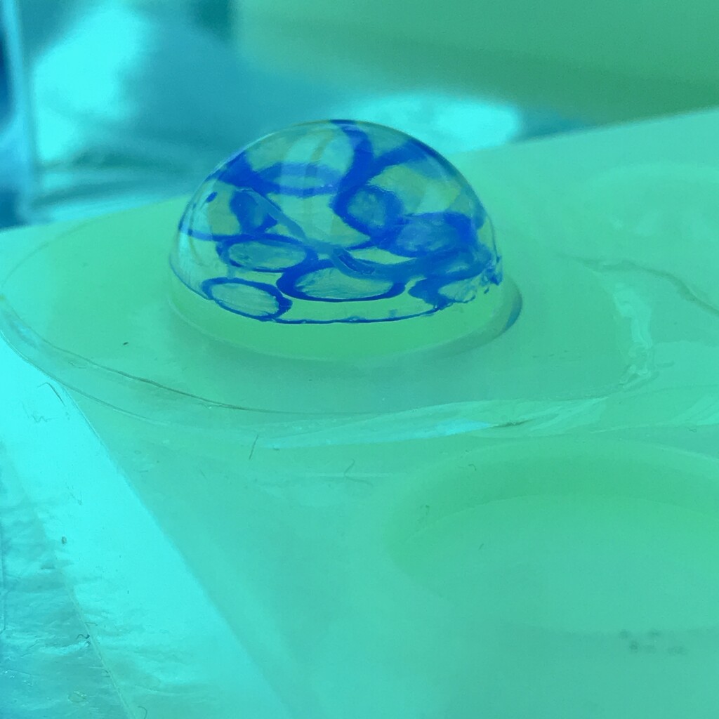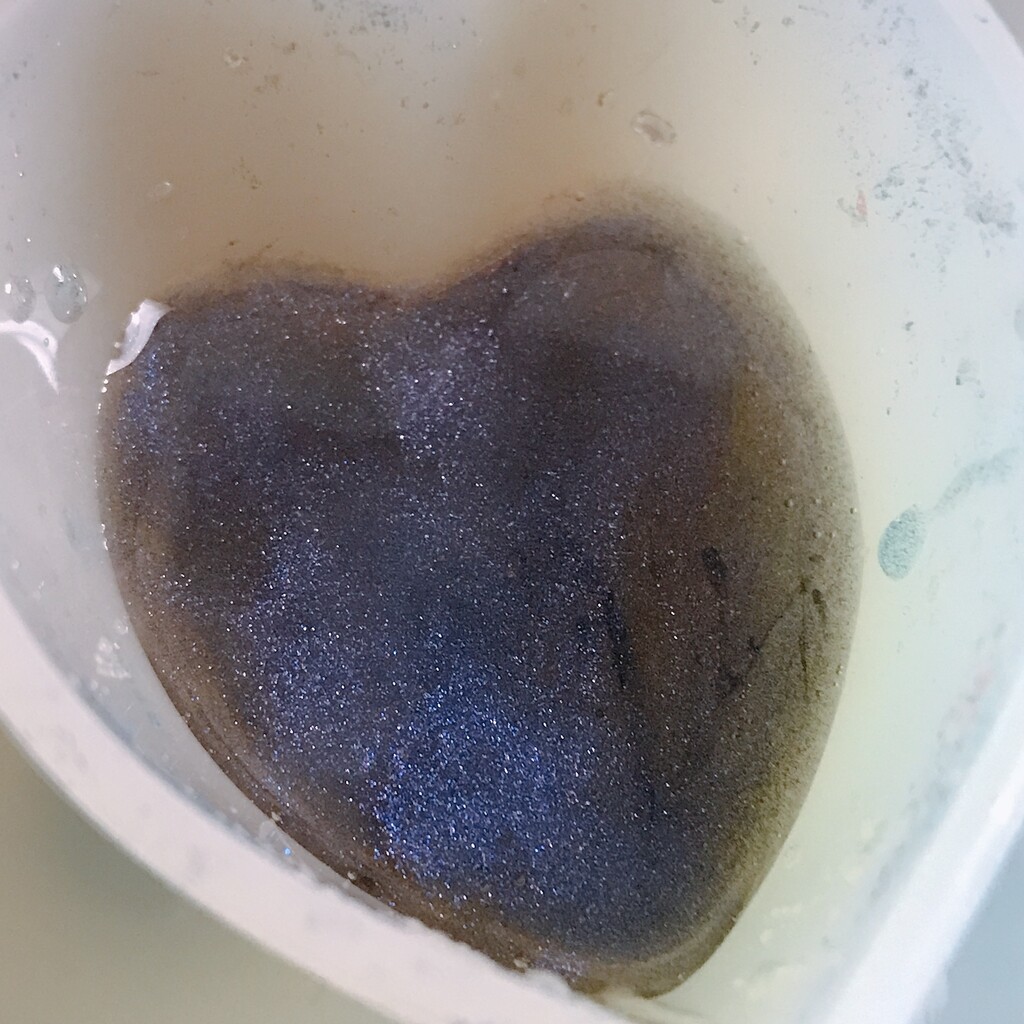今日の鉱石は、先日やったクラゲ模様を応用して作っていこうと思います。 ↑このクラゲ。まず、モールドにレジンを入れます。半分くらい。硬化します。固めてる間に、絵の具の準備。アクリル絵の具を水で薄めました。これを硬化したレジンの上から落としていきます。ポタポタ ...