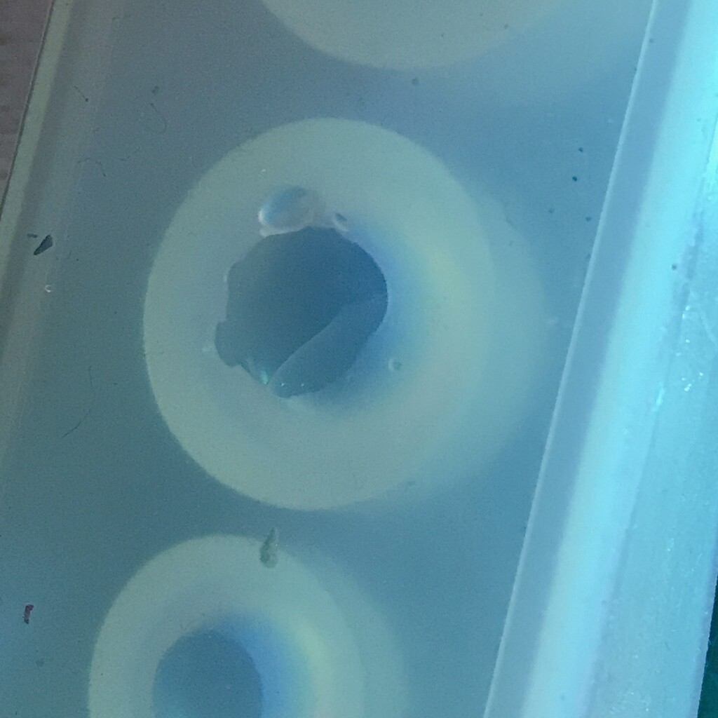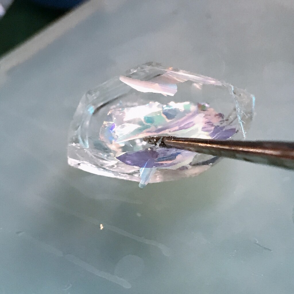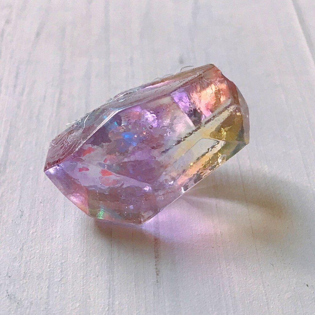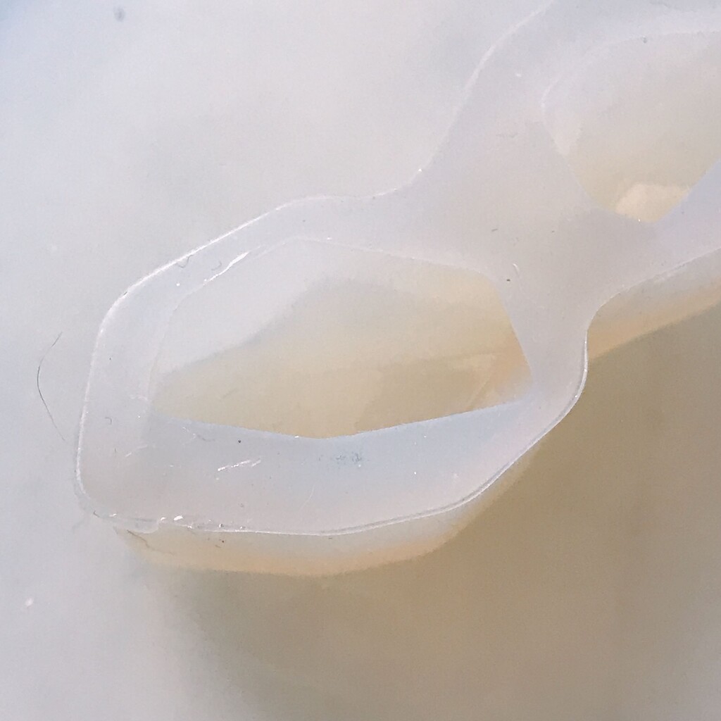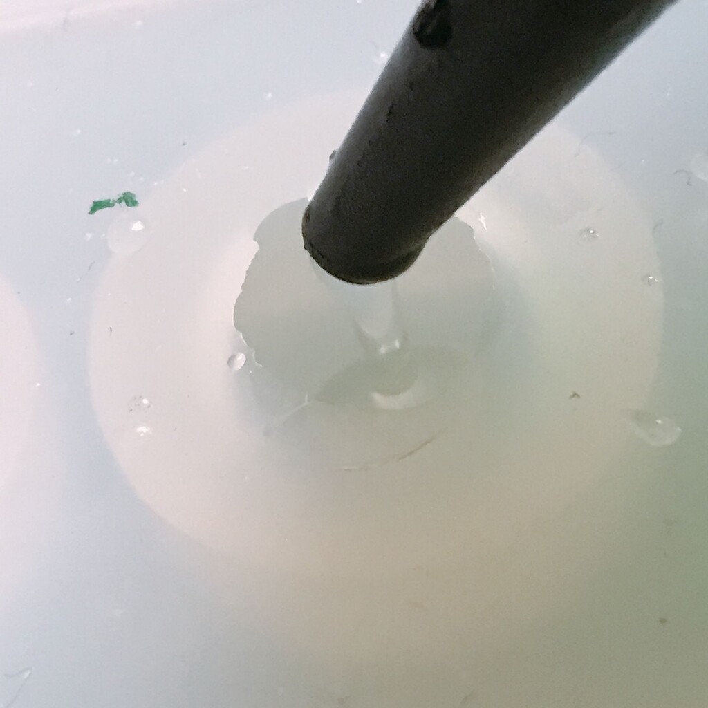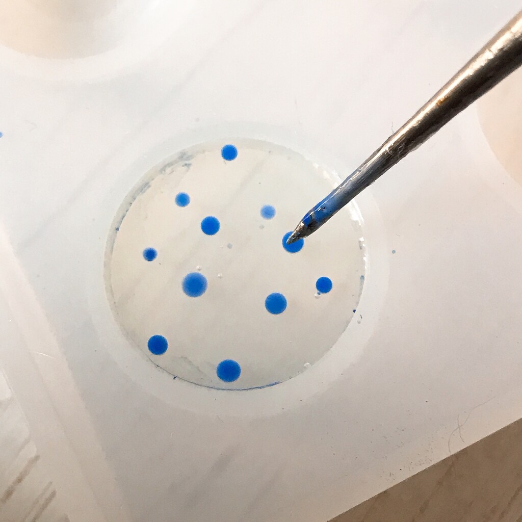 今日の鉱石は、先日やったクラゲ模様を応用して作っていこうと思います。 ↑このクラゲ。まず、モールドにレジンを入れます。半分くらい。硬化します。固めてる間に、絵の具の準備。アクリル絵の具を水で薄めました。これを硬化したレジンの上から落としていきます。ポタポタ ...
