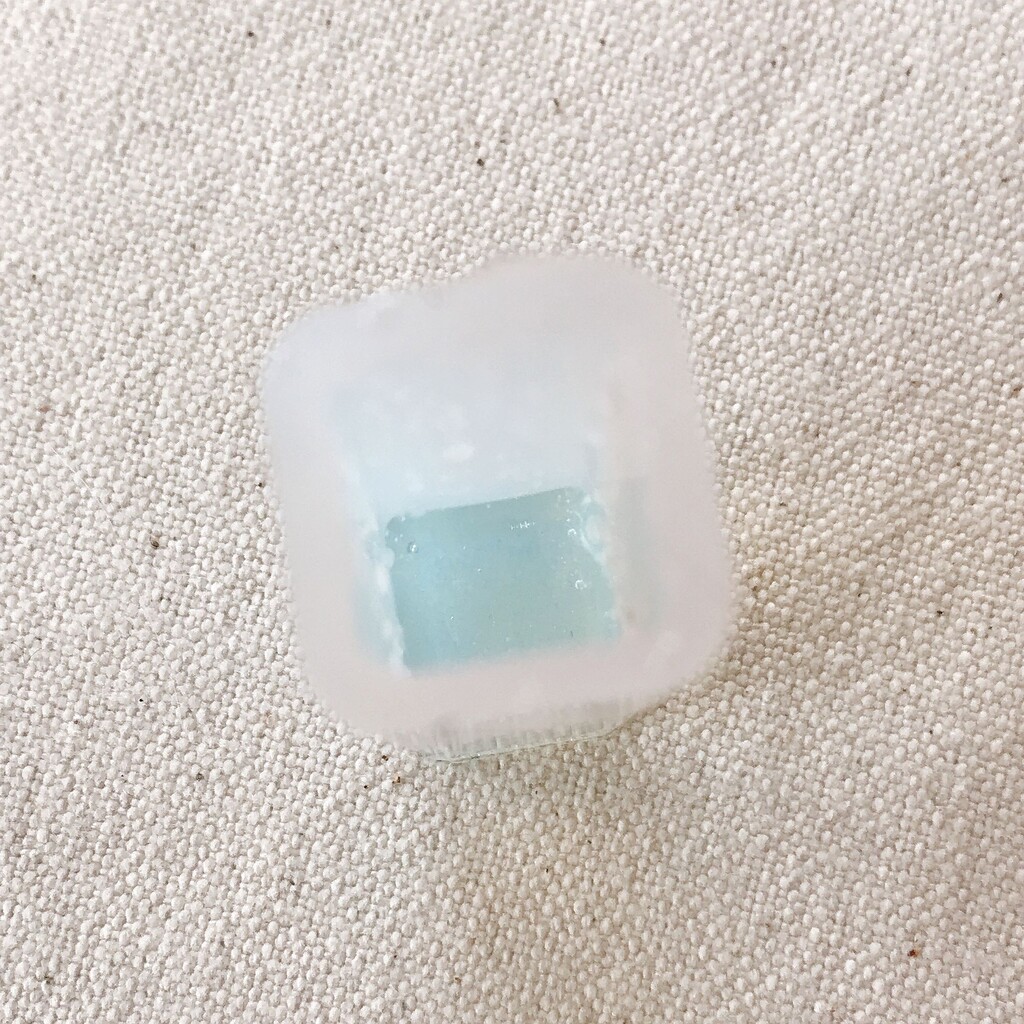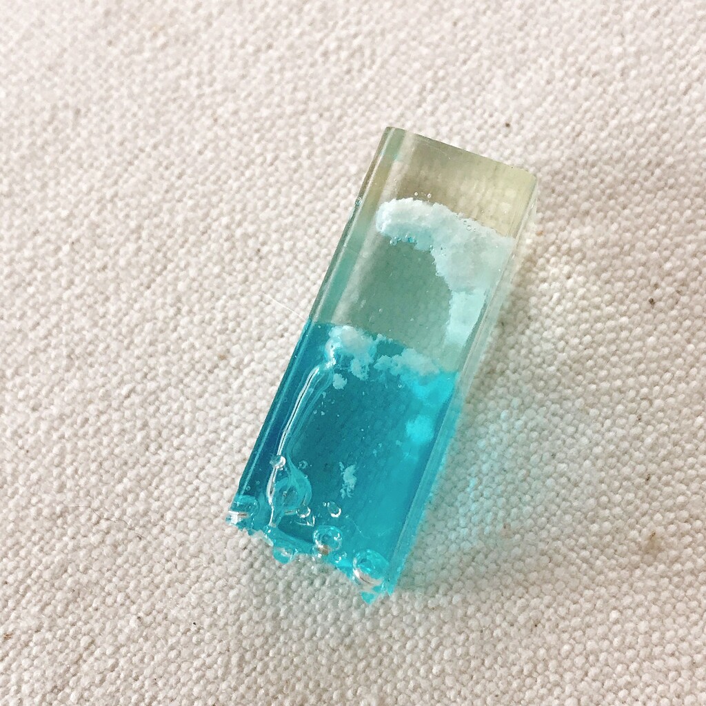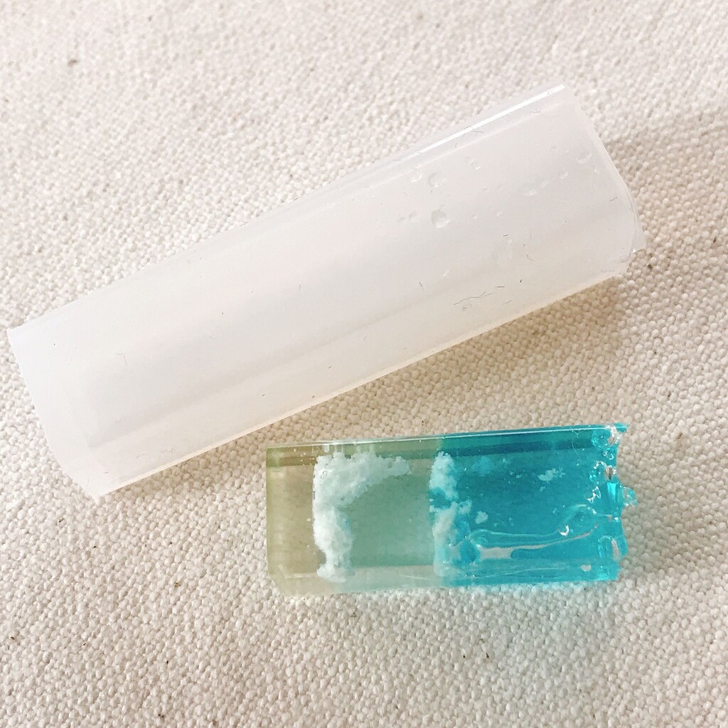 モールドから取れにくい時は、レジンクリーナーをモールドと作品の隙間に数滴垂らして下から押し上げると比較的楽に取り出せますよ(๑° ꒳ °๑)