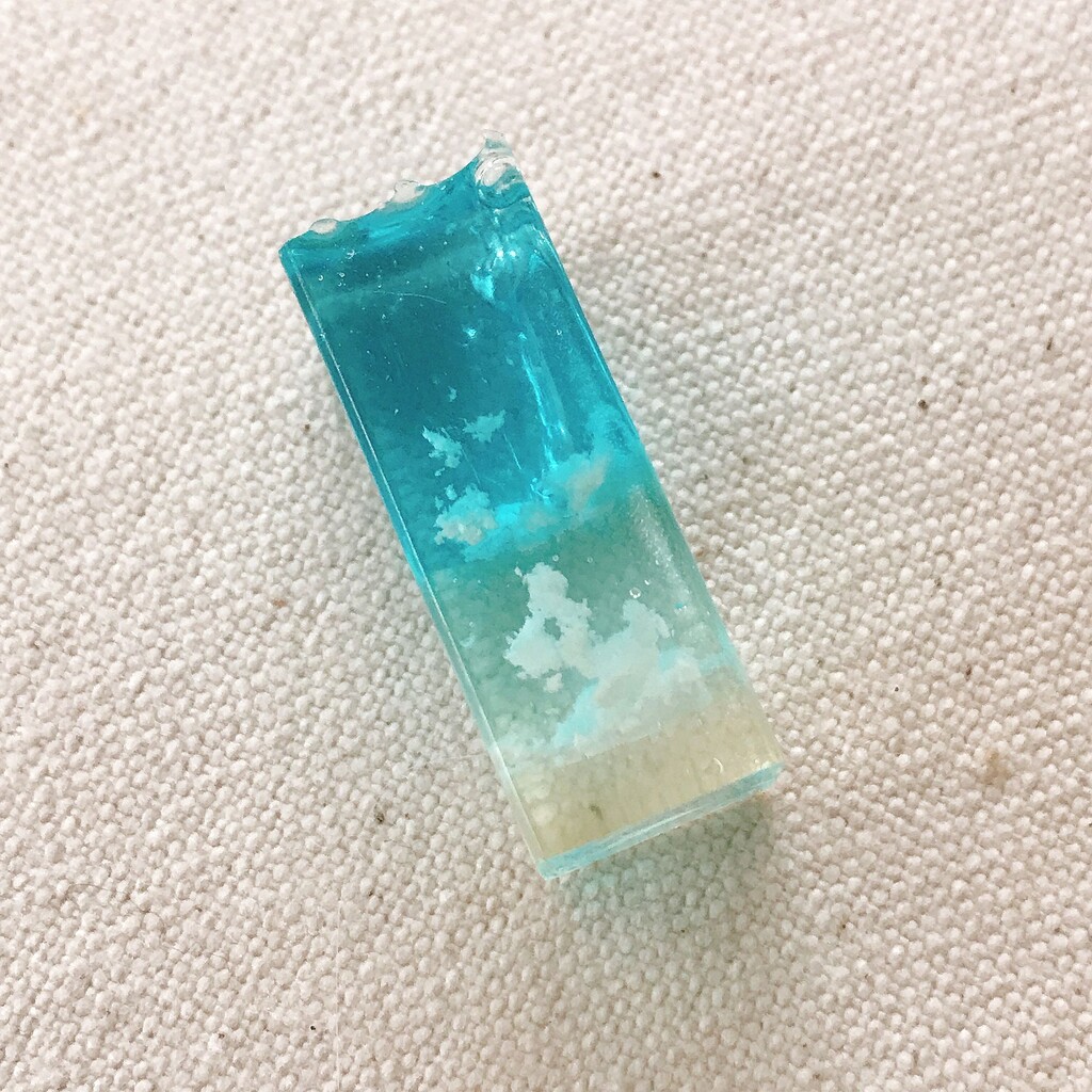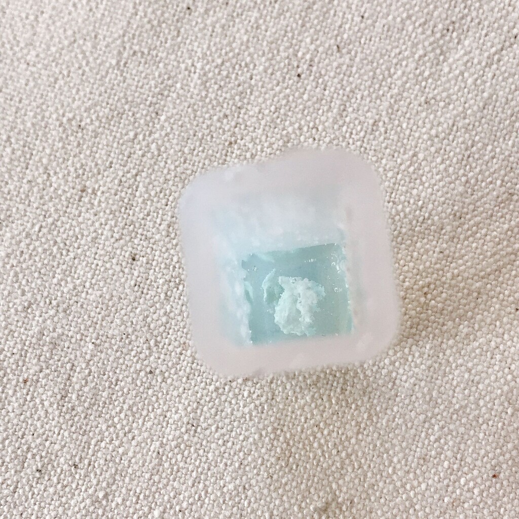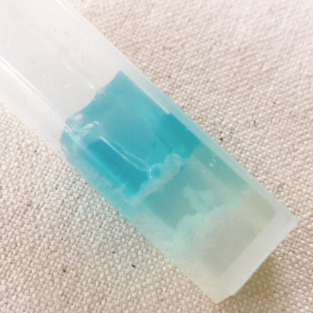 モールドから取れにくい時は、レジンクリーナーをモールドと作品の隙間に数滴垂らして下から押し上げると比較的楽に取り出せますよ(๑° ꒳ °๑)