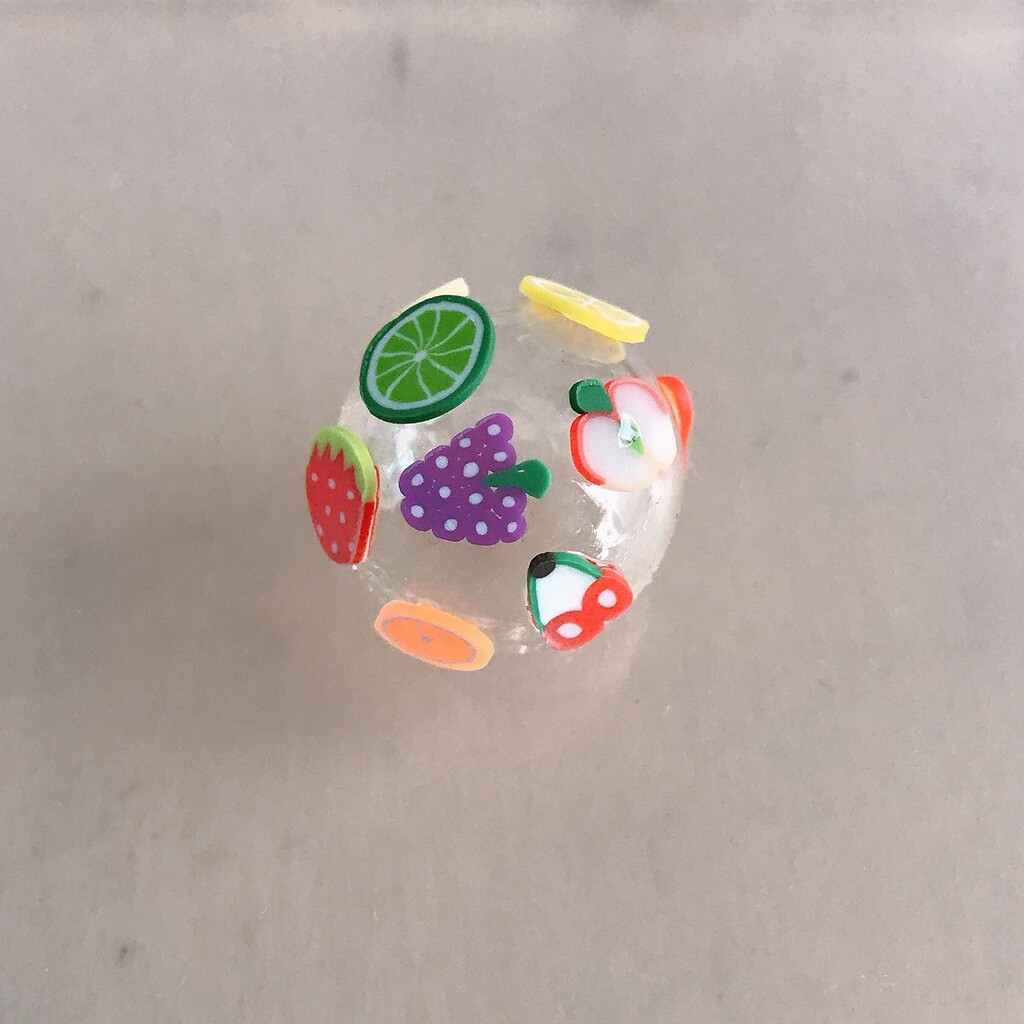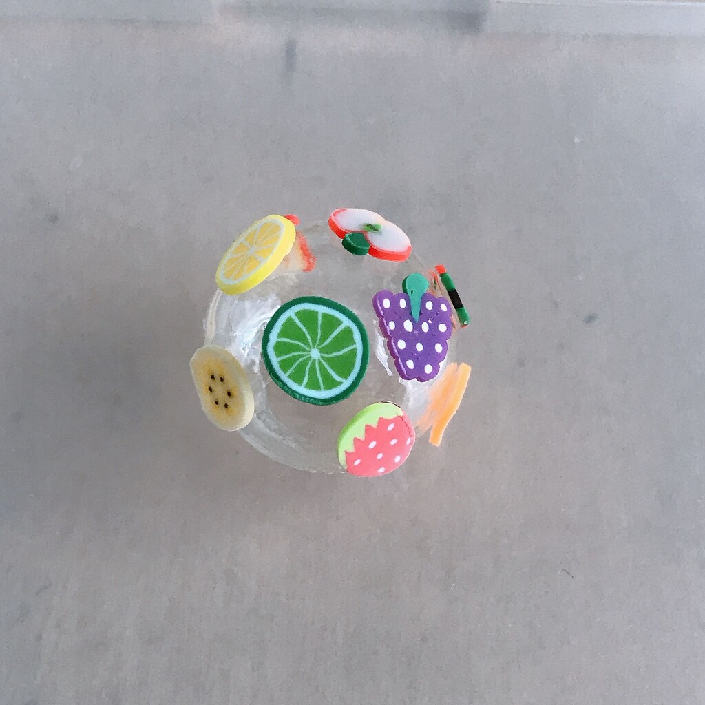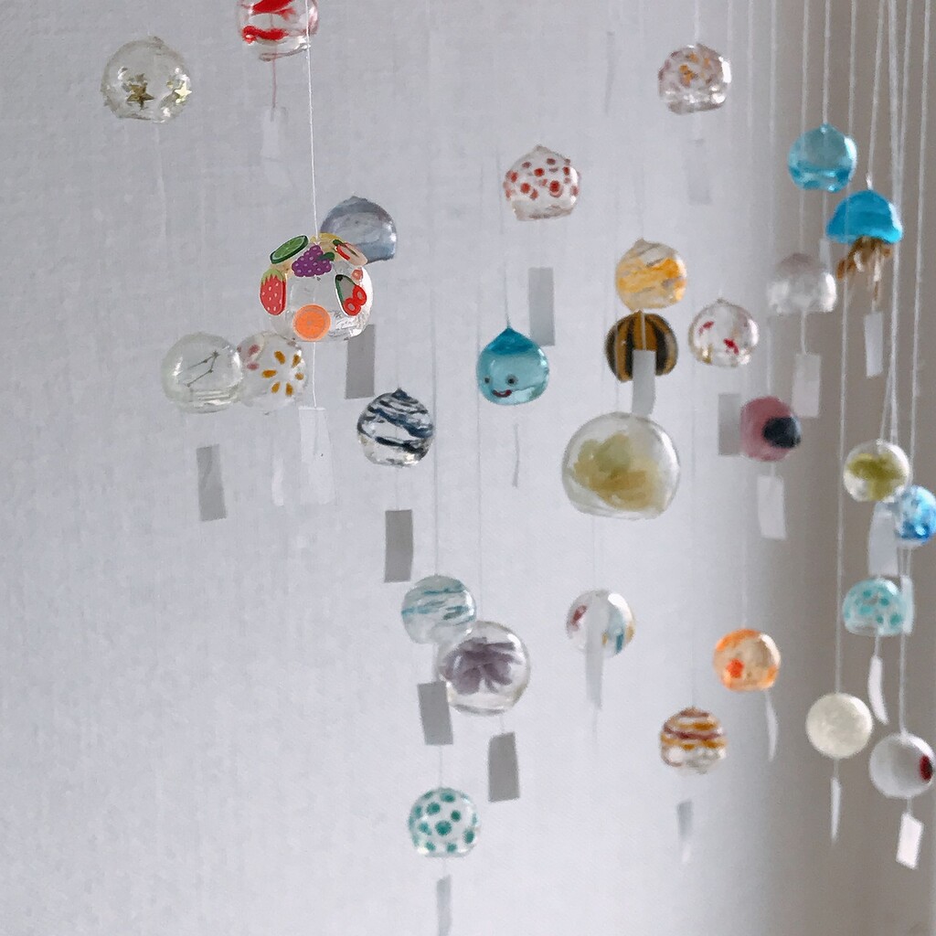 花の時みたいにフルーツをくっつけて風鈴の中に入れて、短冊の代わりに割り箸ぶら下げたらフルーツ飴みたいかもo(^-^)o