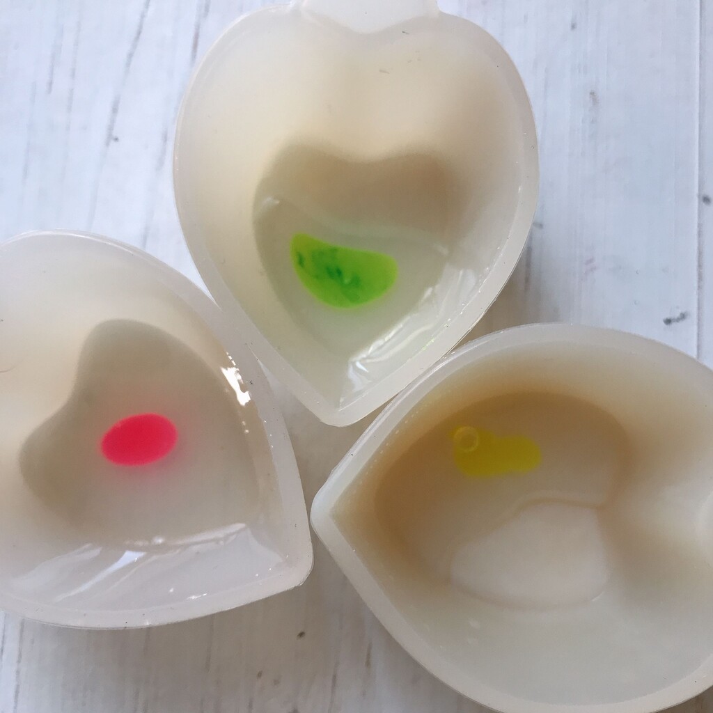 レジンを蛍光色に染めました。