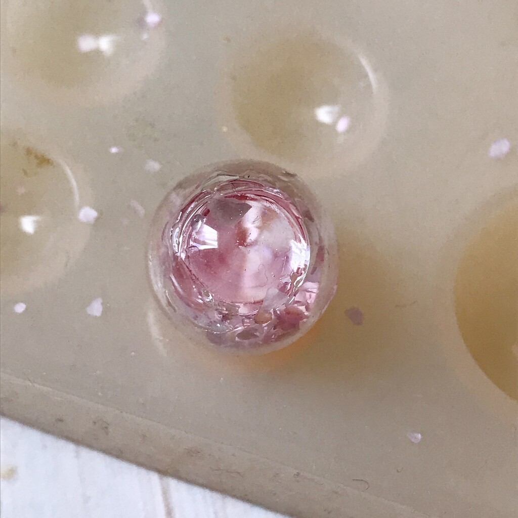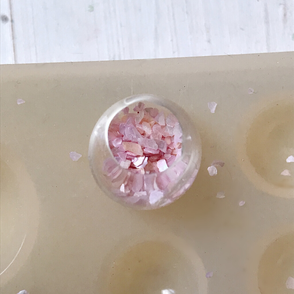 球体の中にフレークを入れます。