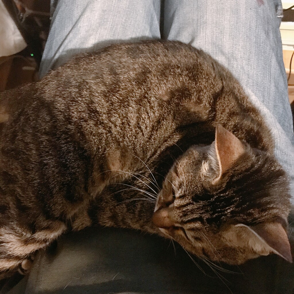 私の膝の上を陣取るごま。