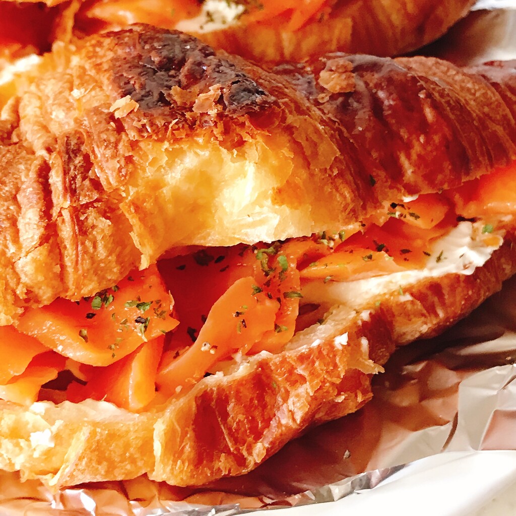 スモークサーモンとクリームチーズを挟んだ