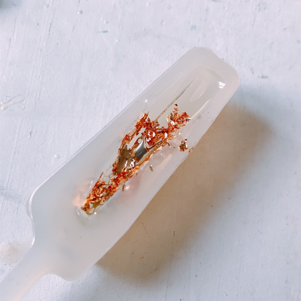 モールドにレジンを少量入れて