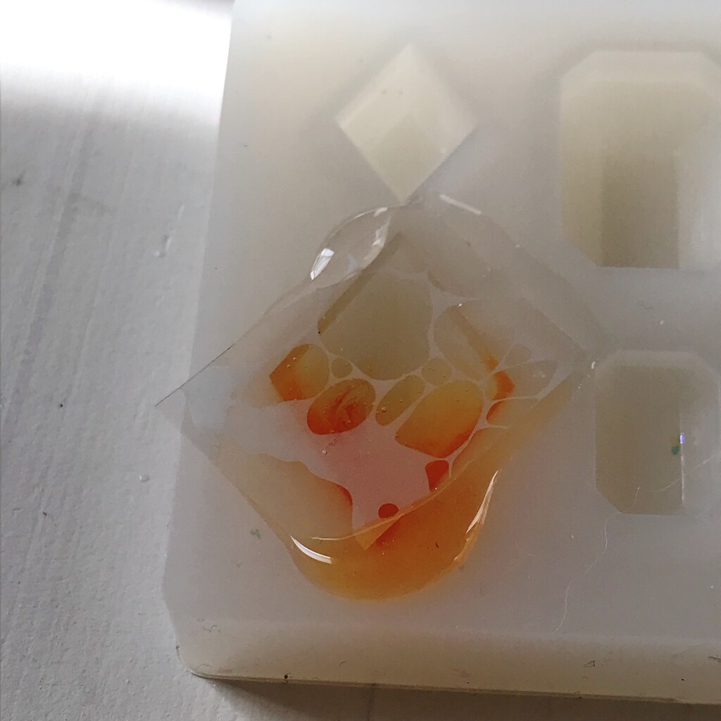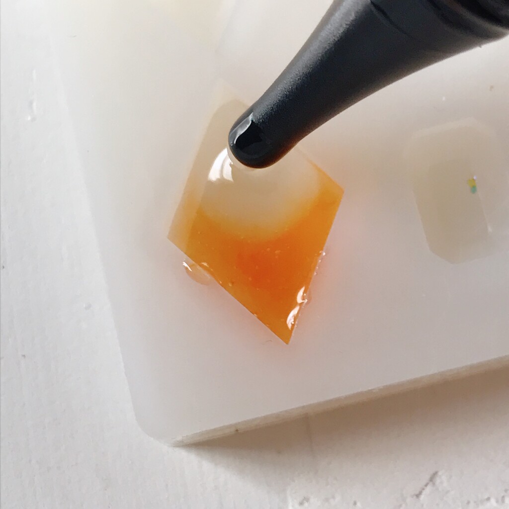 着色したレジンを流し入れ