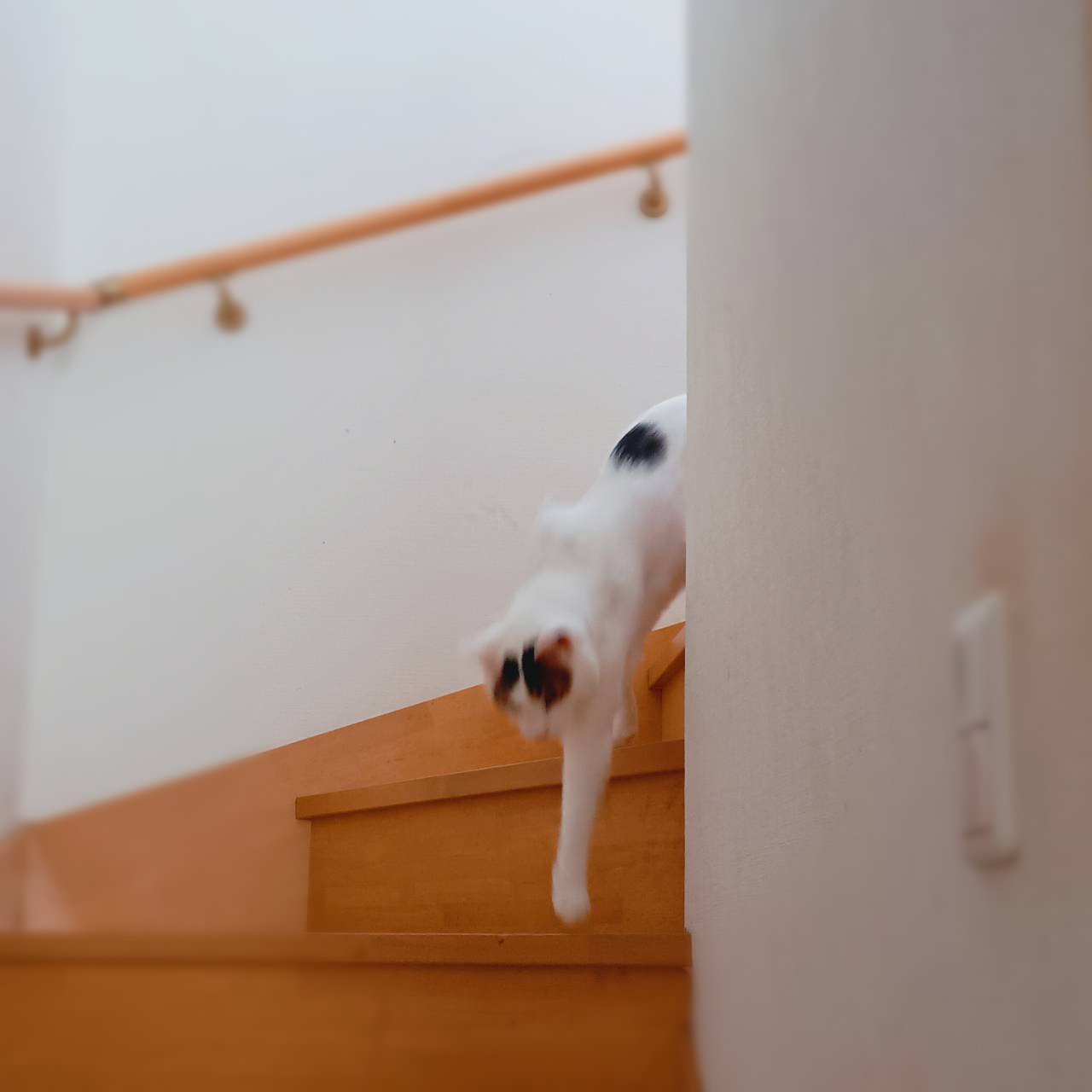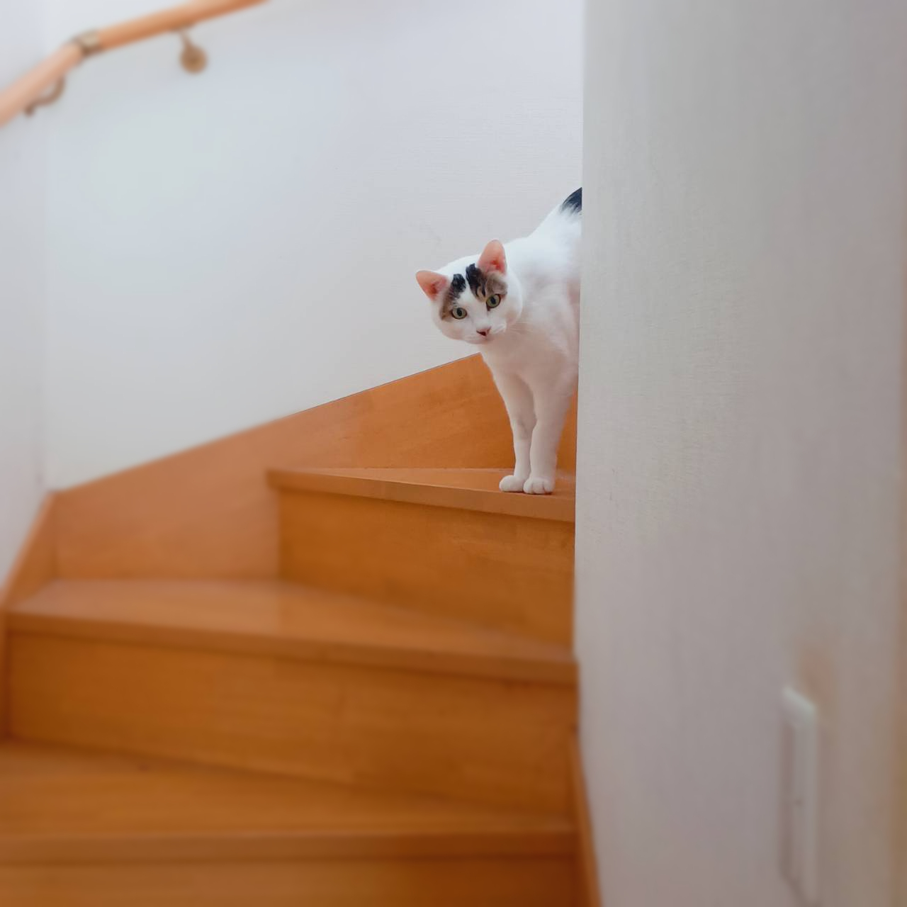 階段を下りてくる足音に耳を傾けています。