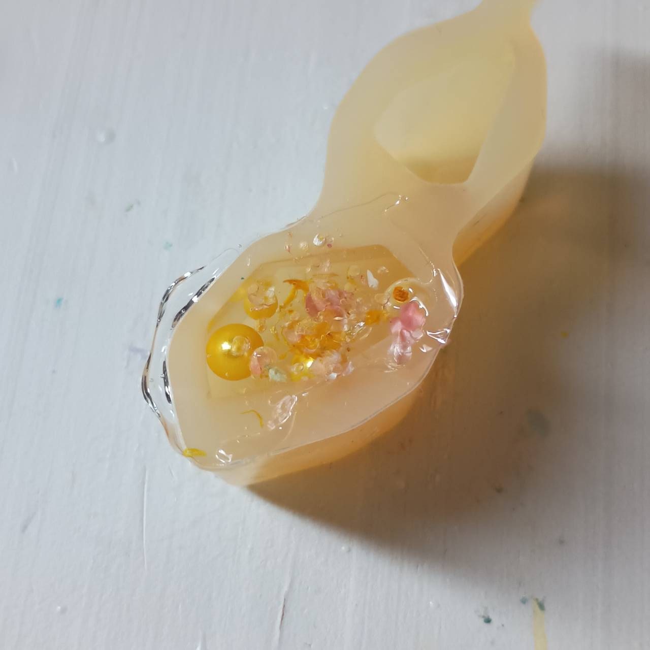 モールドにレジンを半分くらい入れて