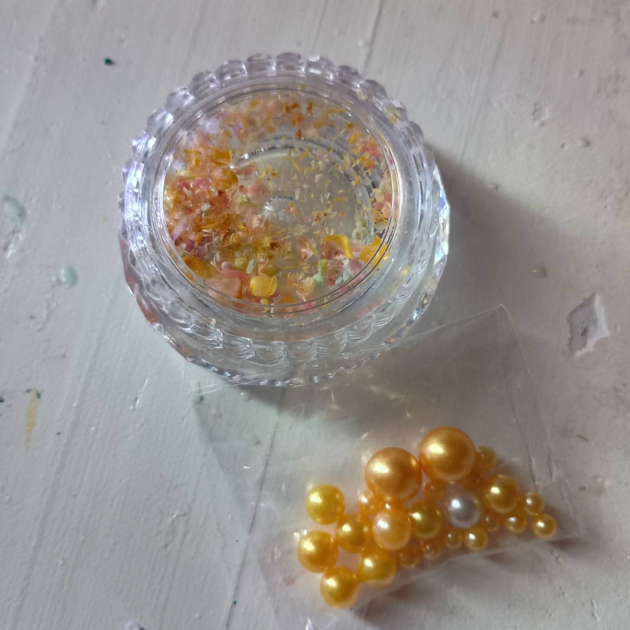 今回は黄色い花びらと玉を使います。