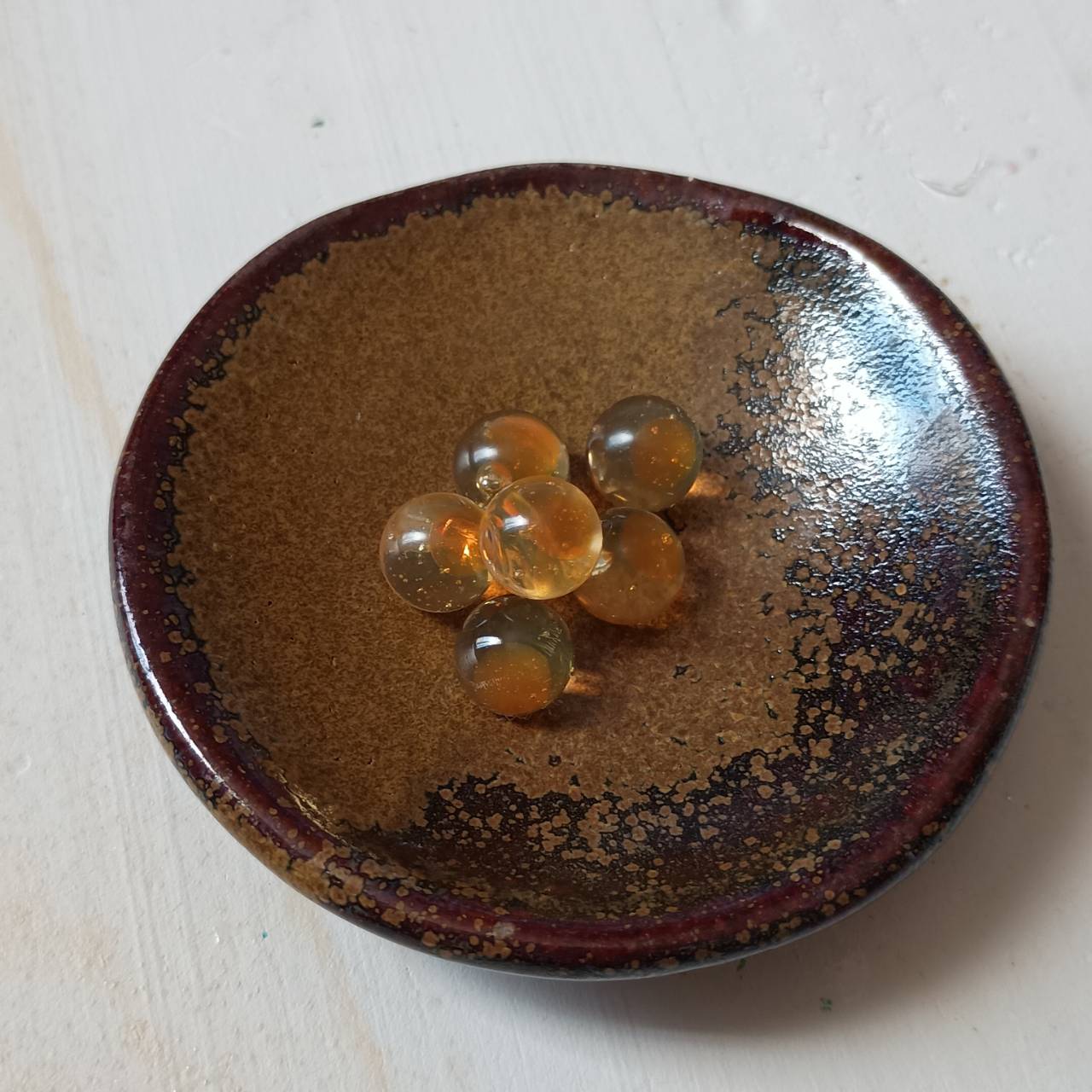 平らなところにオレンジのレジンを少量をとって硬化。