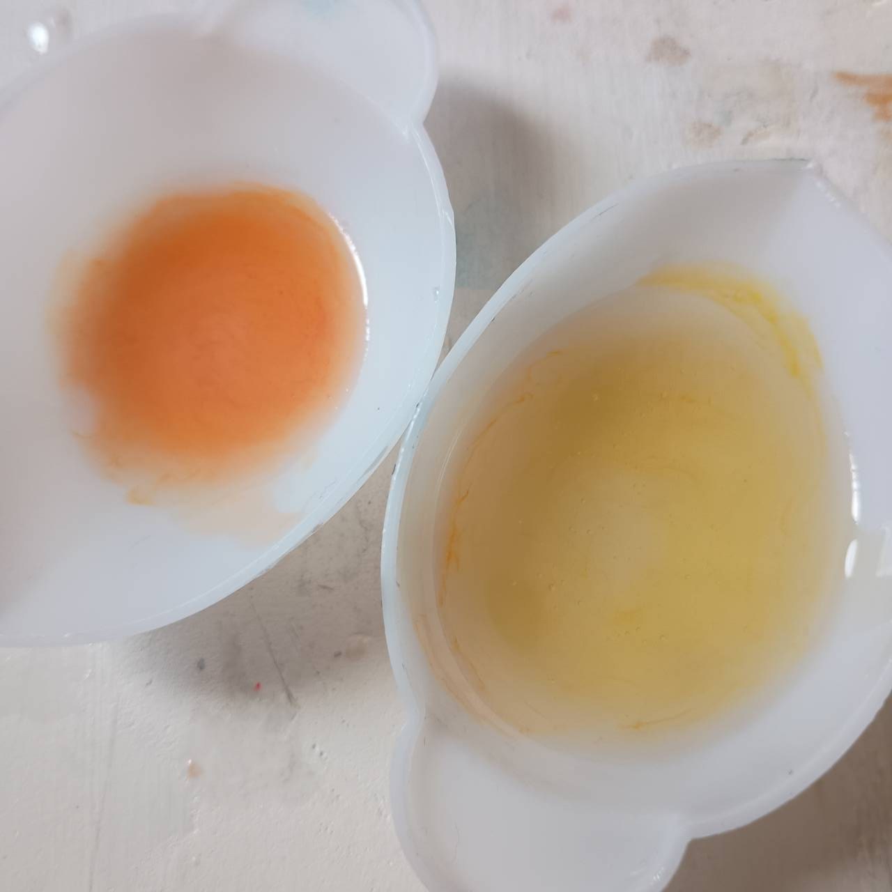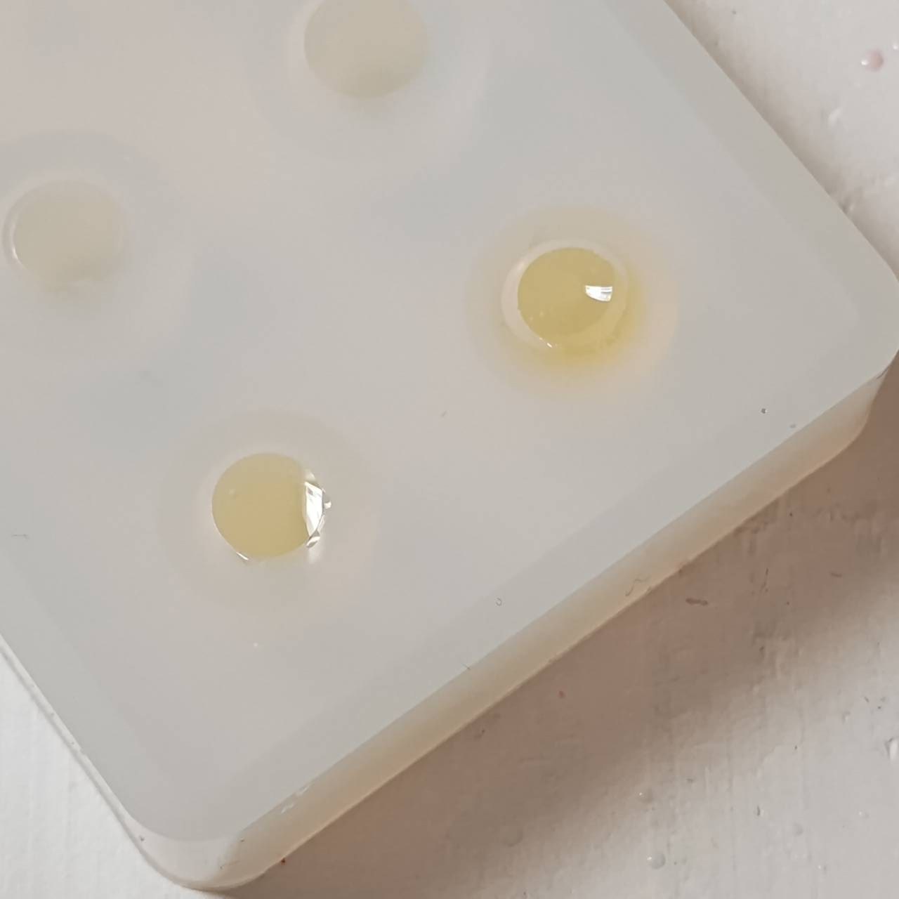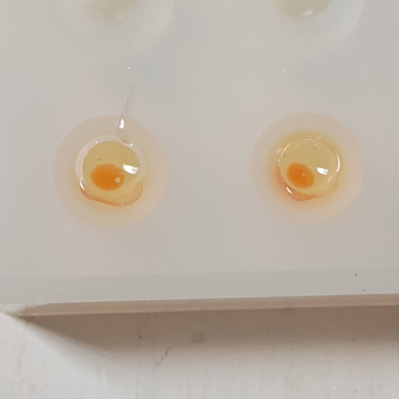 薄黄色のレジンを注ぎ入れて
